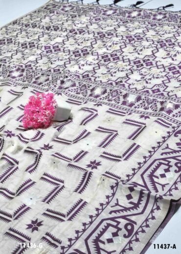 Saraswathi – 11437-A Halfwhite with Purple Color Chanderi Cotton Saree CM1314322 (RR6E)