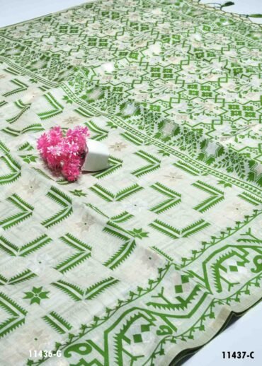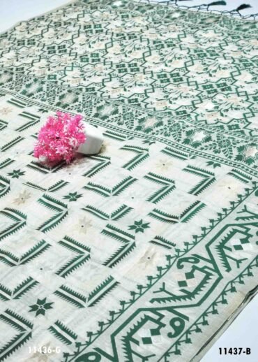 Saraswathi – 11437-B Halfwhite with Green Color Chanderi Cotton Saree CM1314322 (RR6E)