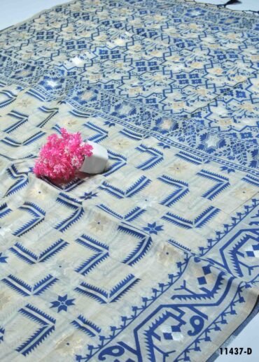 Saraswathi – 11437-D Halfwhite with Blue Color Chanderi Cotton Saree CM1314322 (RR6E)
