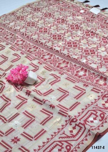 Saraswathi – 11437-E Halfwhite with Red Color Chanderi Cotton Saree CM1314322 (RR6E)