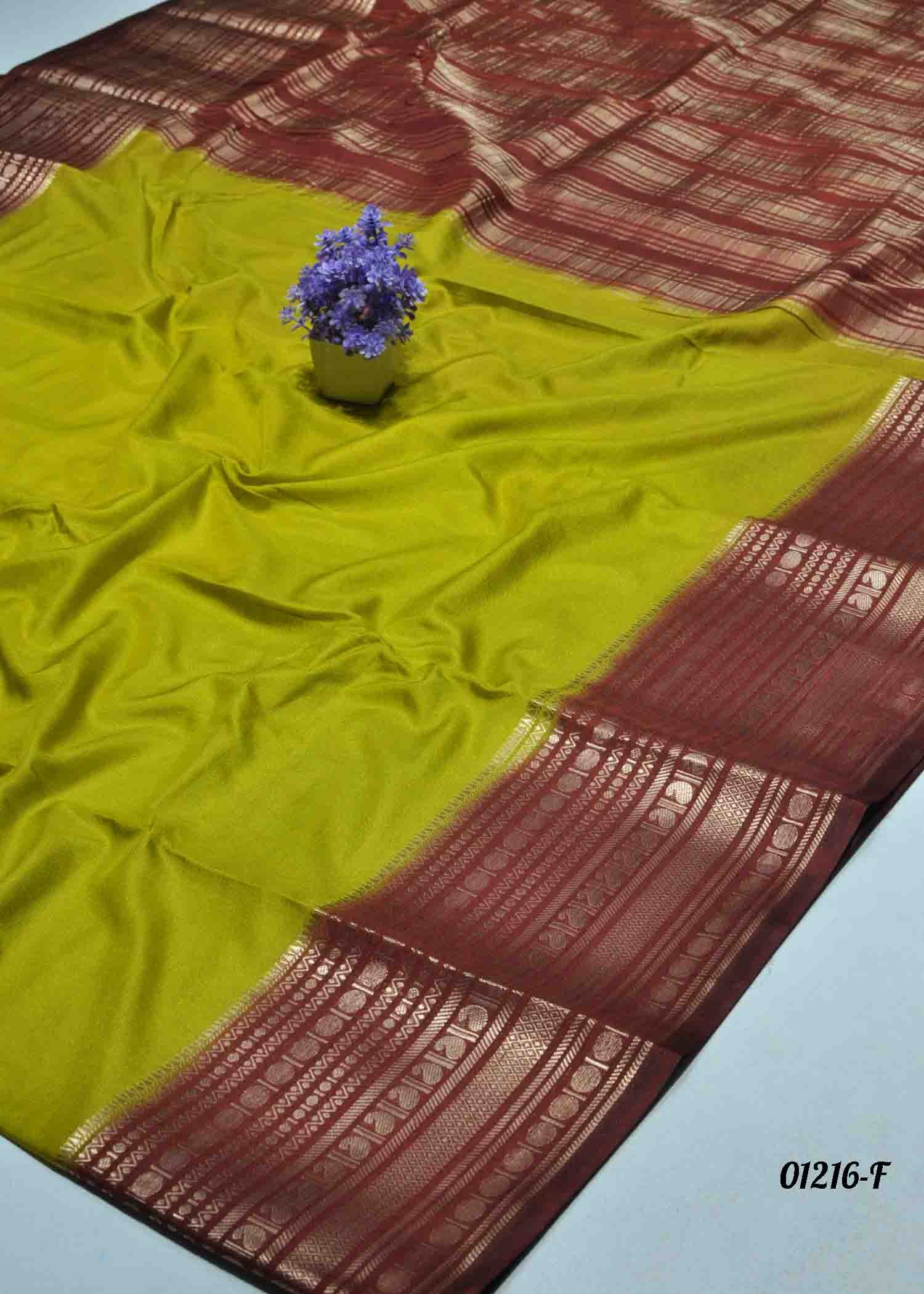 Aadharshini -01216-F FernGreen Color Excellent Plain Crepe Silk Saree CM1343206 (RR3C)