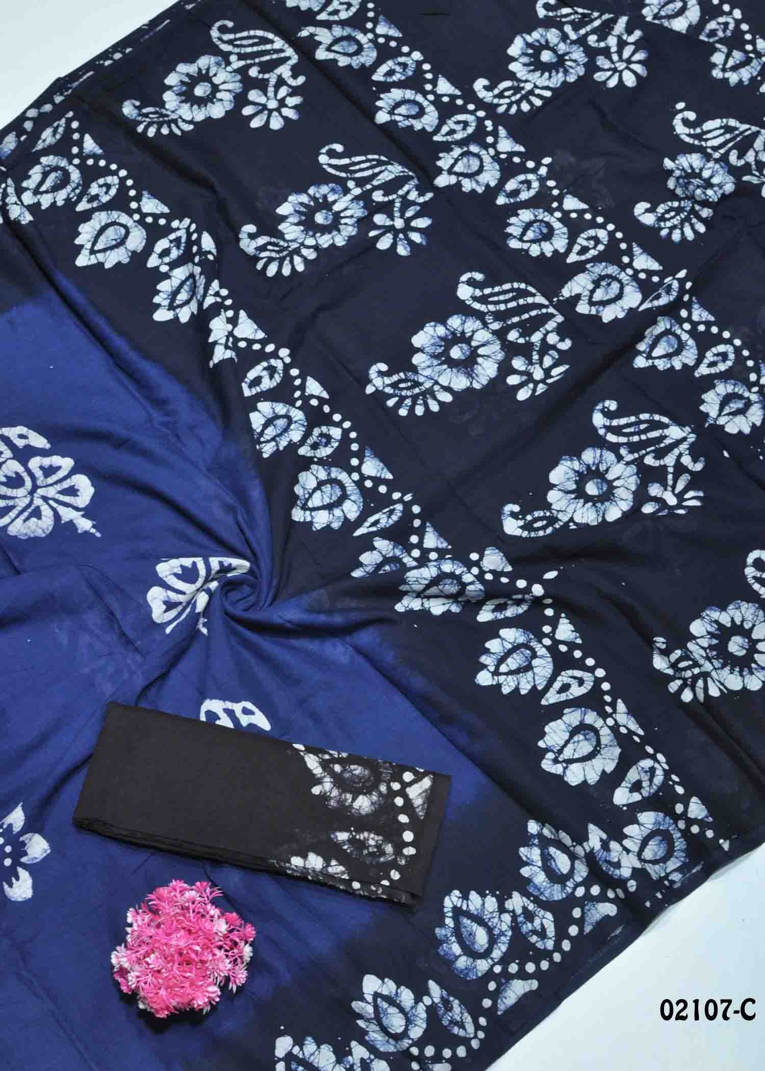 Abirami – 02107-C InkBlue Color Summer Special Battik Cotton Saree CM1362821 [LR4B]