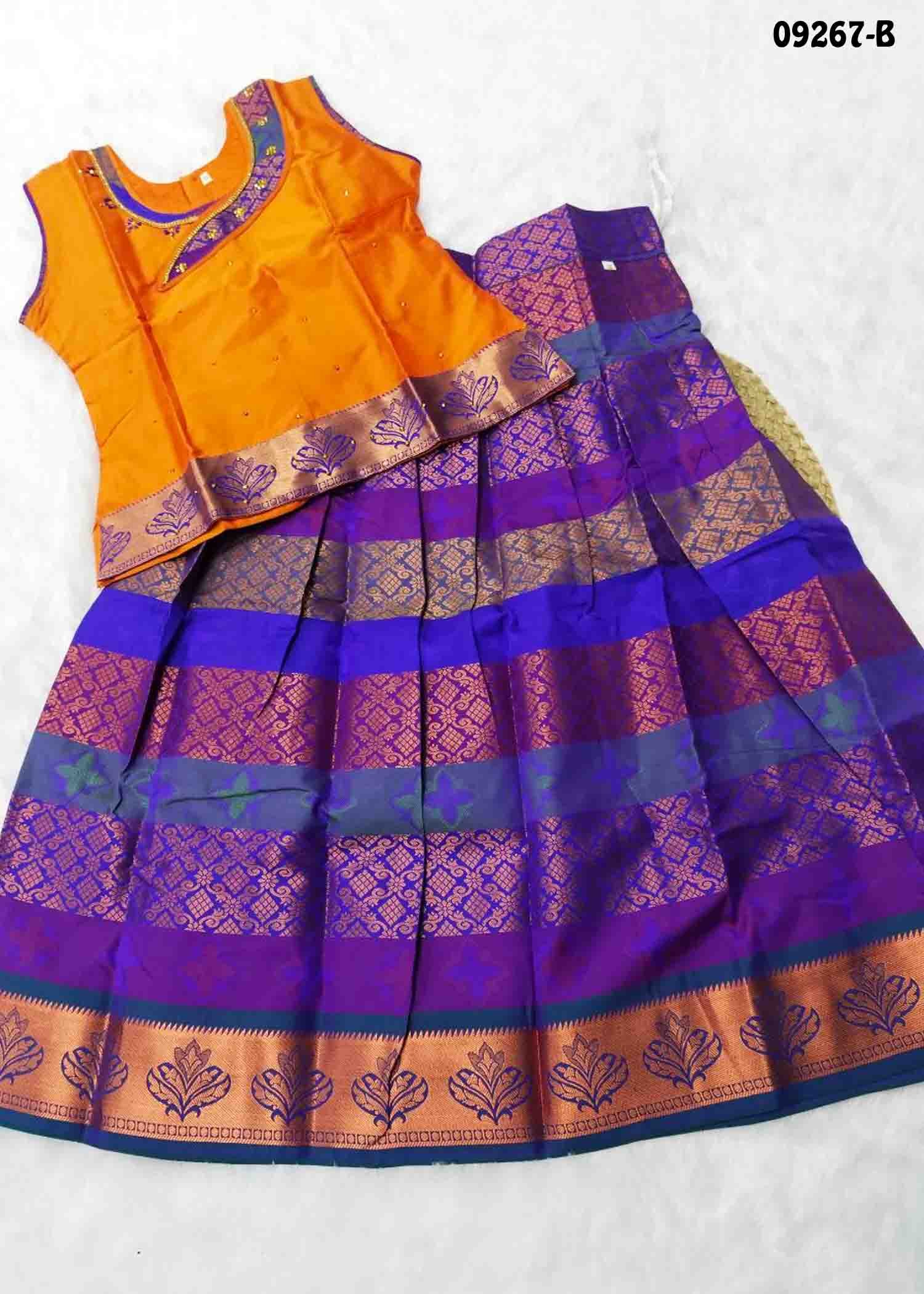 Agaligai-09267-B BrightYellow Color Readymade Banarasi Pavadai Sattai 10 to 11 Year CM1287568 (LR2C)