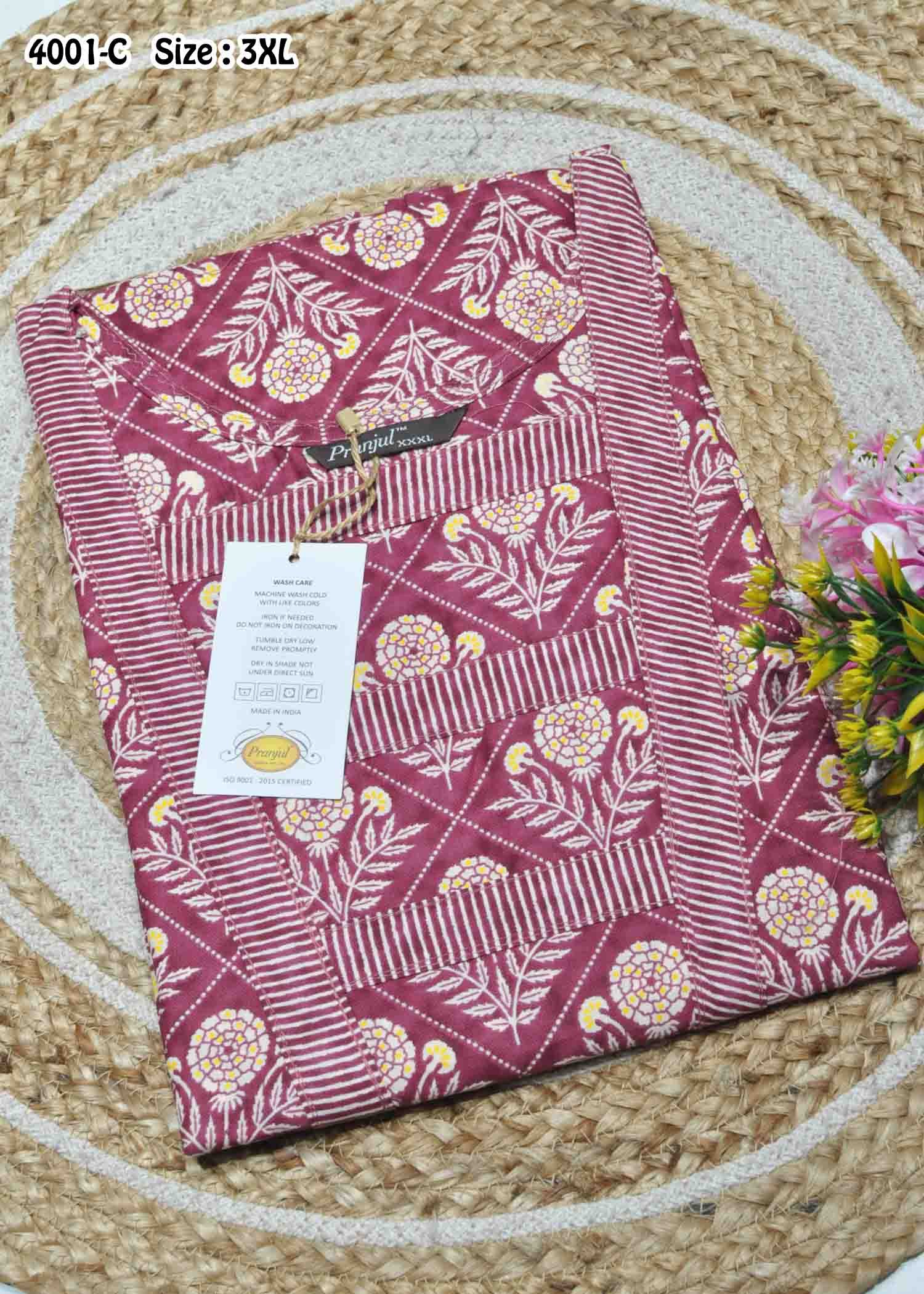 Agalya -4001-C [3XL] Purple Color (Pranjul Brand) Mixed Cotton Readymade Pocket Nighty CM1347939 [RR1D]
