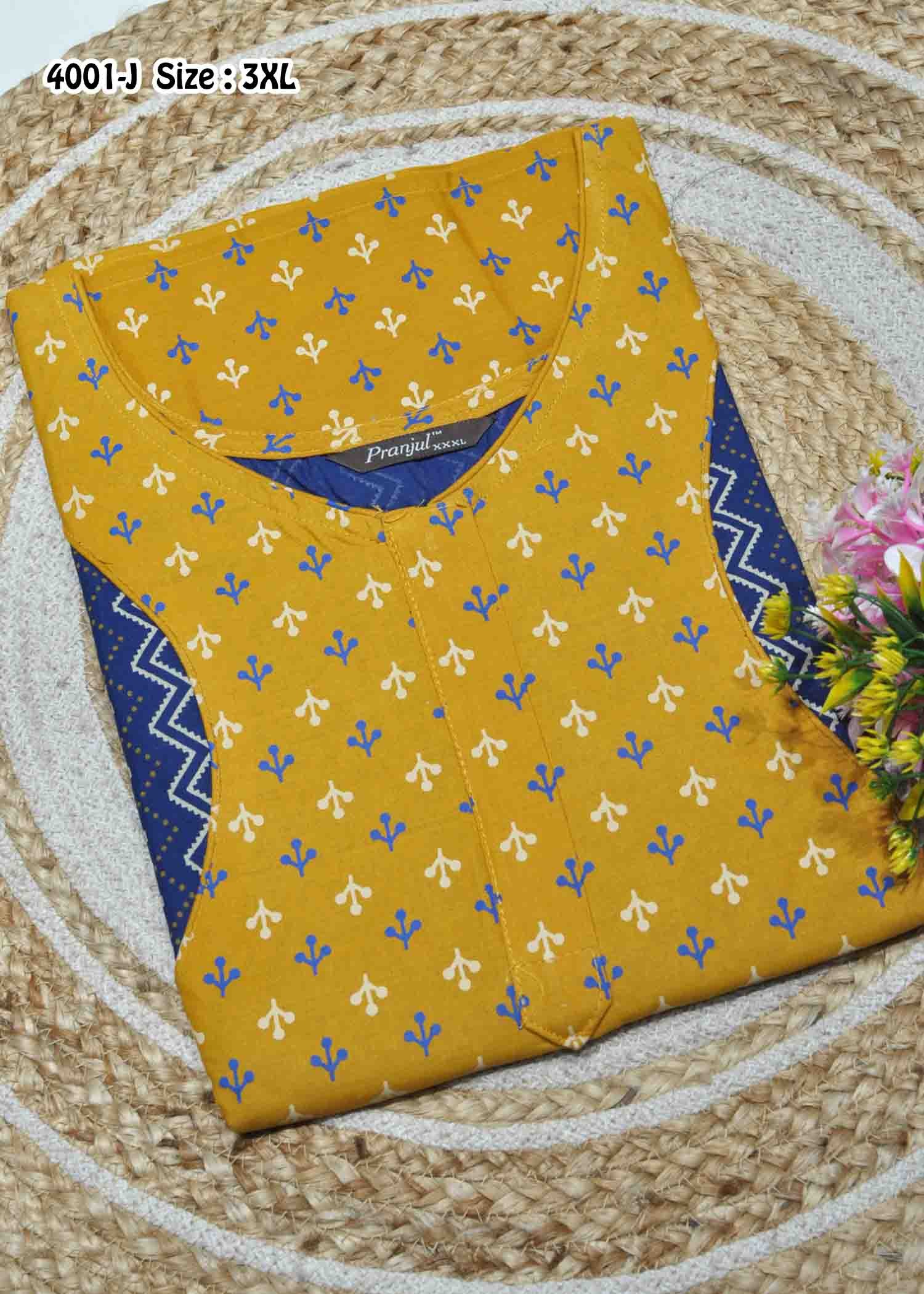 Agalya -4001-J [3XL] Mustard Color (Pranjul Brand) Mixed Cotton Readymade Pocket Nighty CM1347939 [RR1D]
