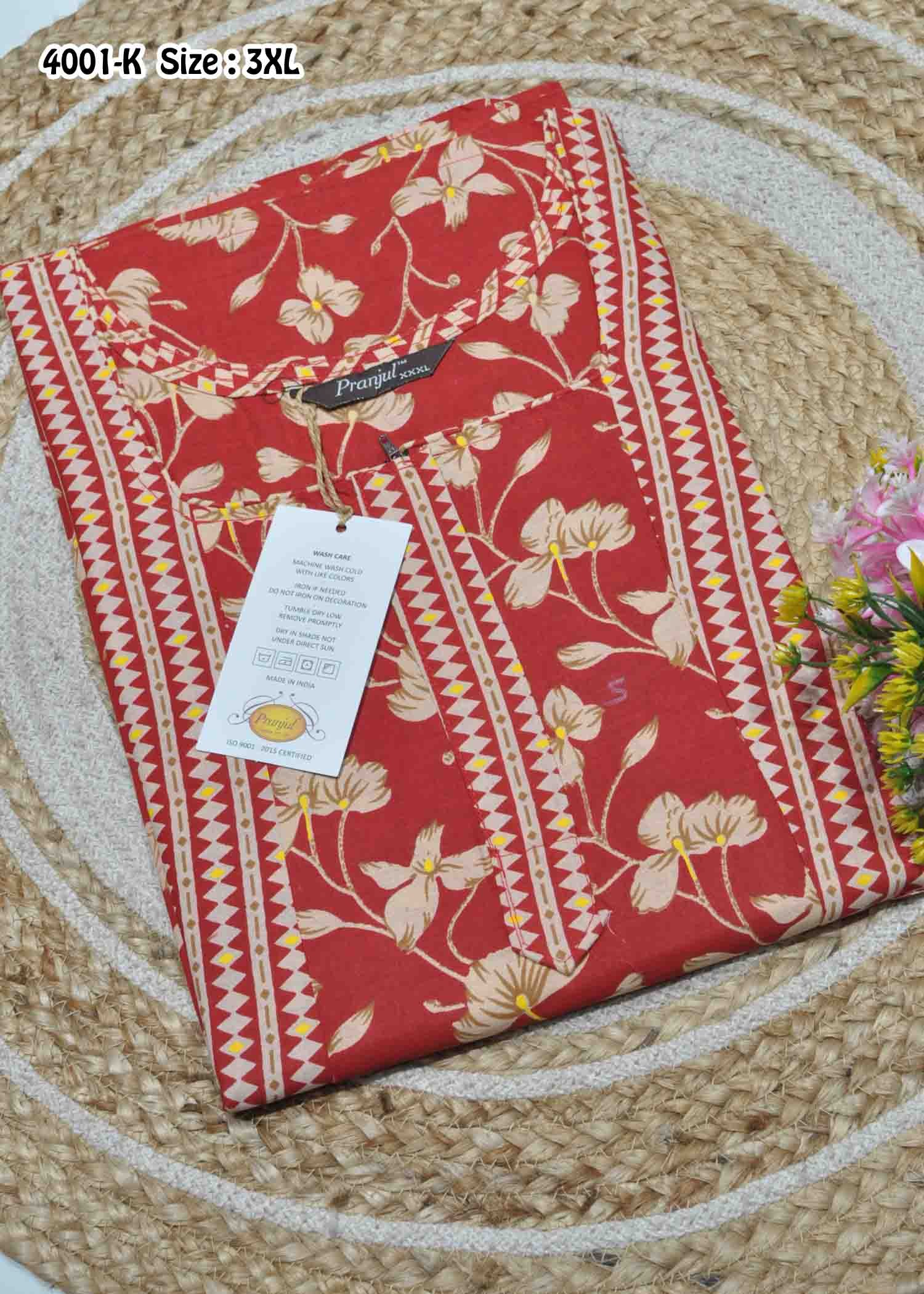 Agalya -4001-K [3XL] Red Color (Pranjul Brand) Mixed Cotton Readymade Pocket Nighty CM1337464 [RR1D]