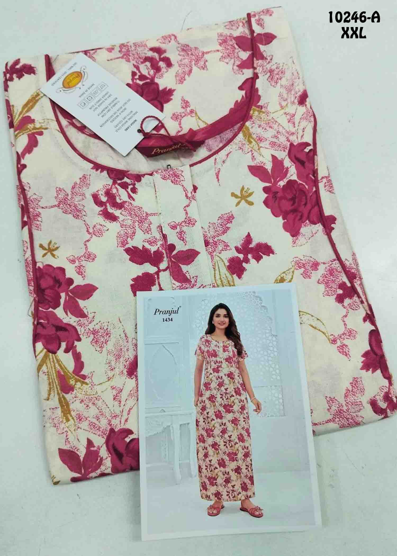 Aganshasri -10246-A [XXL] Halfwhite Color (Pranjul Brand) Cotton Readymade Pocket Nighty CM1300265 (LR2B)
