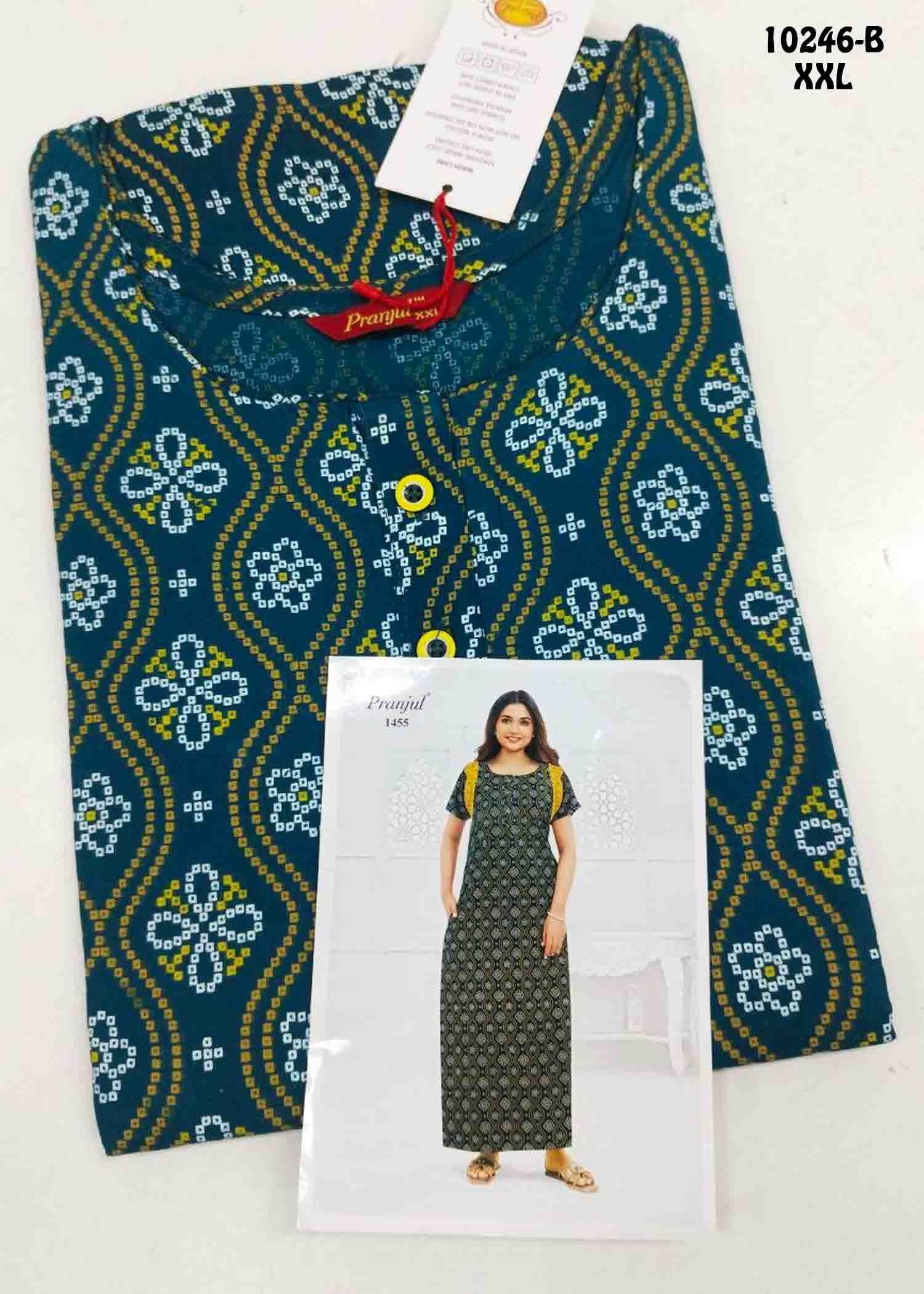 Aganshasri -10246-B [XXL] PeacockBlue Color (Pranjul Brand) Cotton Readymade Pocket Nighty CM1300265 (LR2B)