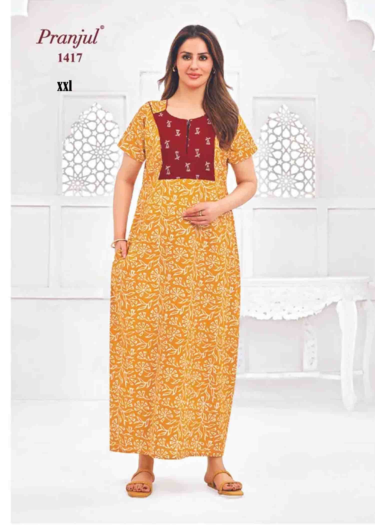 Agasavani-1417 [XXL] Yellow Color (Pranjul Brand) Cotton Readymade Pocket Nighty CM1306129 (LR2B)