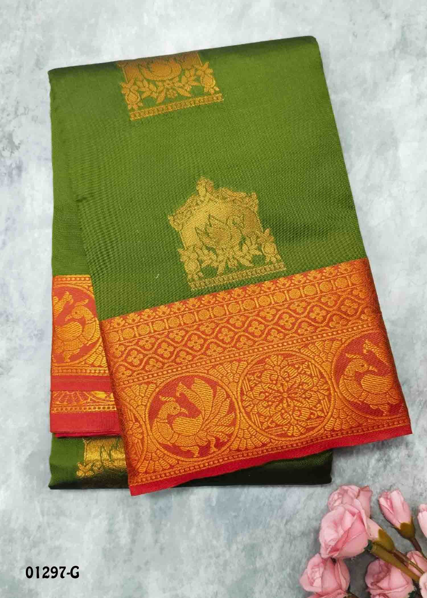 Amuthavalli -01297-G OliveGreen Color Traditional Look Lichi Silk Saree CM1353619 (LR1C)