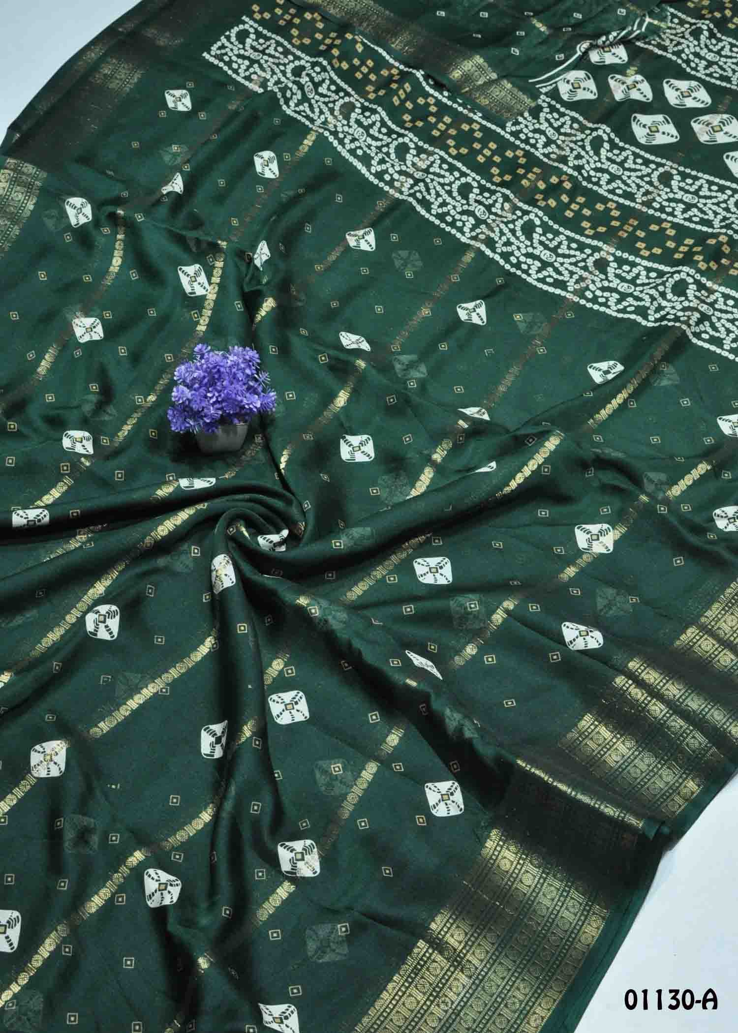 Anitha – 01130-A DarkGreen Color Fancy Moss Chiffon Saree CM1350730 (LR9E)