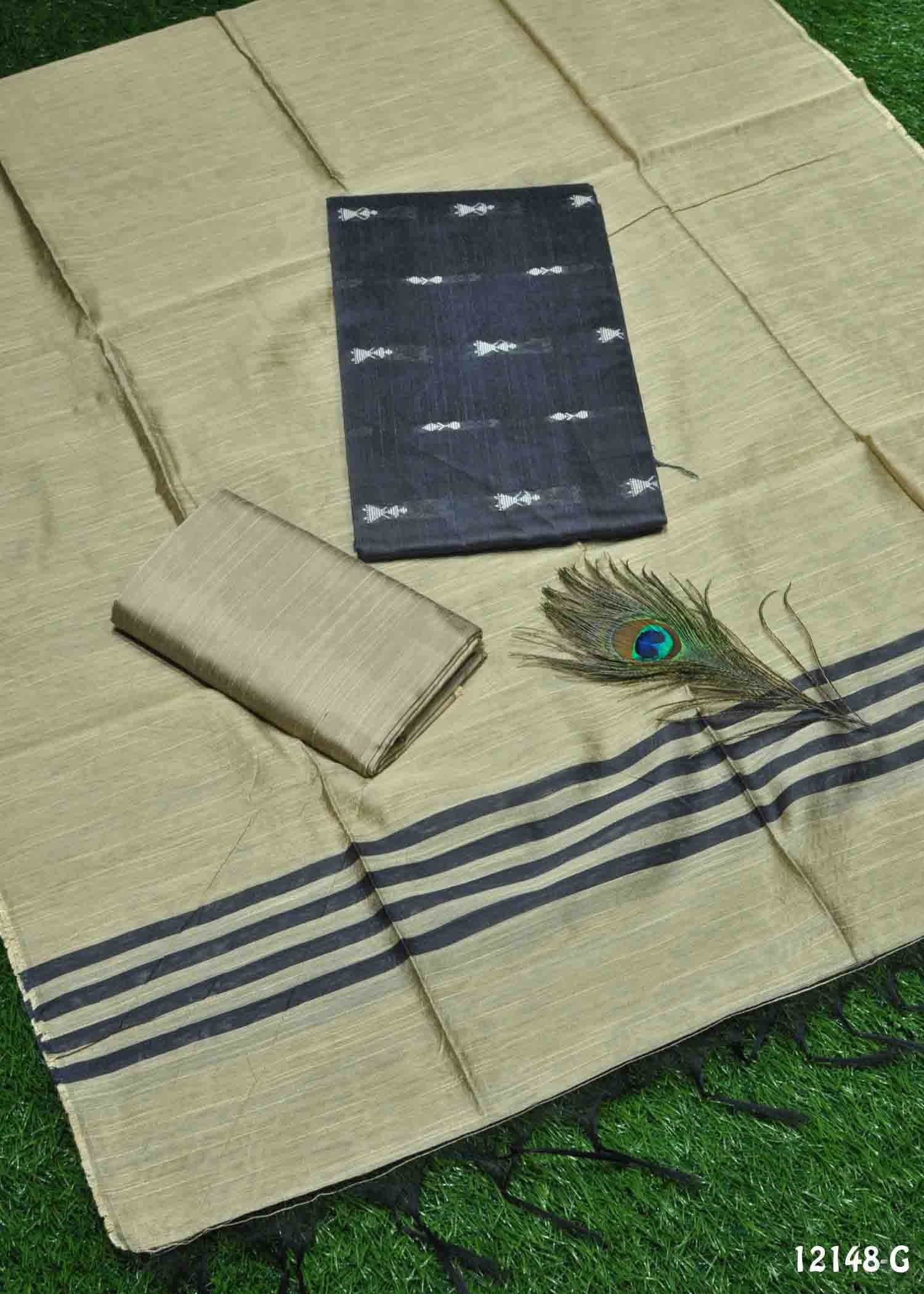 | Occasion : Casual Top : Black Color Dupion Silk Salwar Material (2.20 METER) Bottom : Tan Color Dupion Silk Material (2 METER) Shawl : Tan Color Chanderi Silk Shawl (2.10 METER) Weight : 660 Grams Work : Nykaa Butta & Tassels Wash : Normal Wash |
