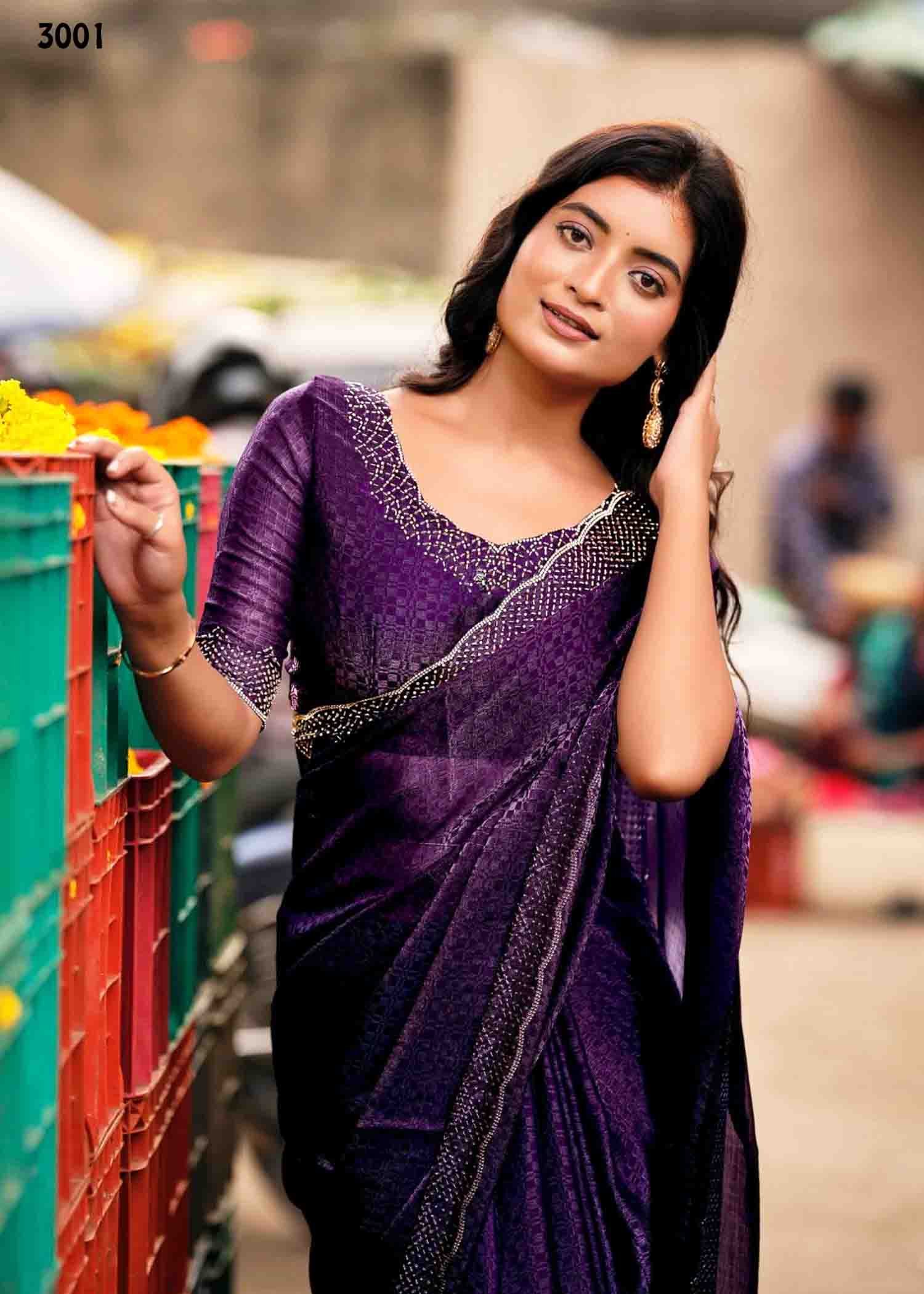 Arulashini – 3001 DeepPurple Color Embellished Beads & Stones Malai Silk Saree CM1329582 (LR8C)