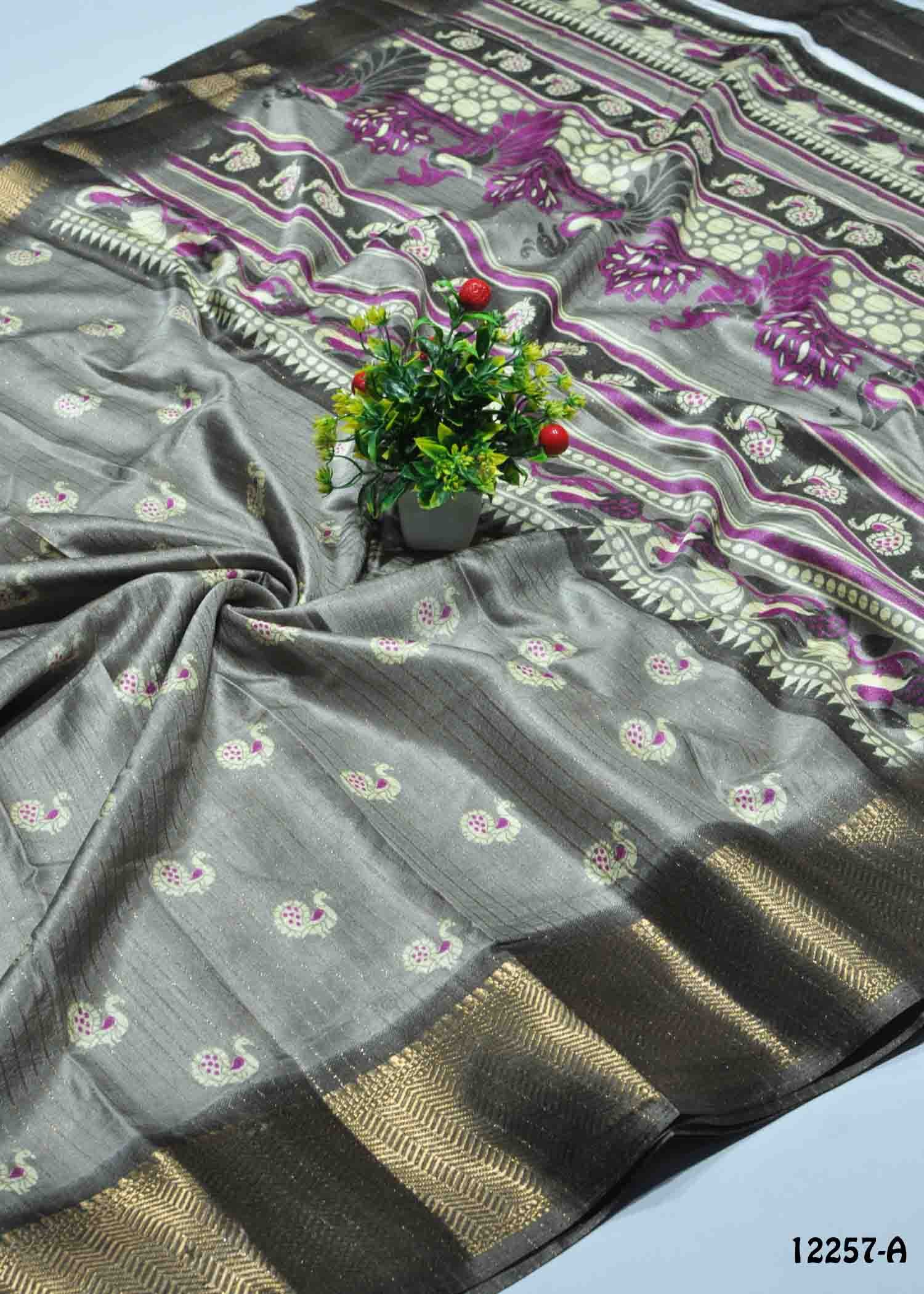 Asleshika – 12257-A Grey Color Trendy Dola Silk Saree CM1316755 (RR6E)