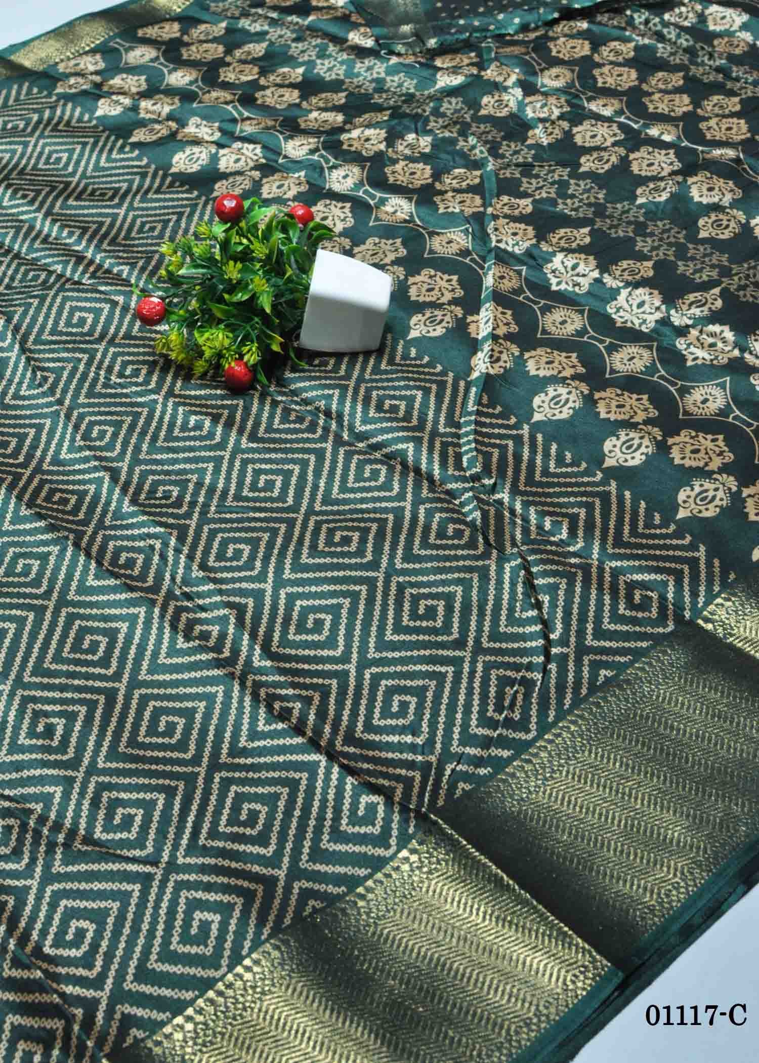 Fabric : Dola Silk Saree Color : DarkGreen |