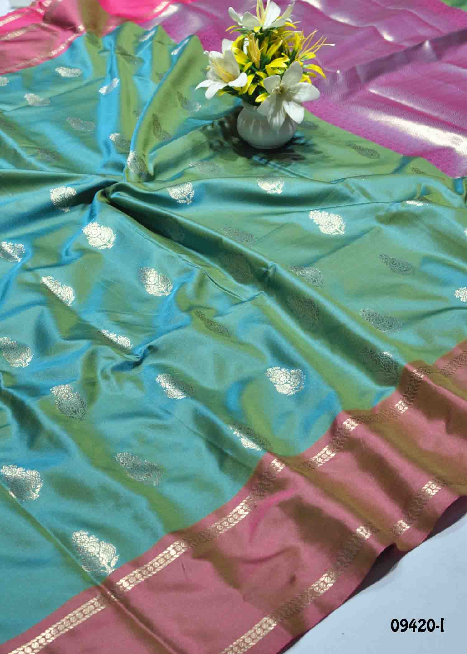 Brianna – 09420-I JungleGreen (Double shade) Buta Silk handwoven Banarasi Silk Saree CM1263686 (LR3C)