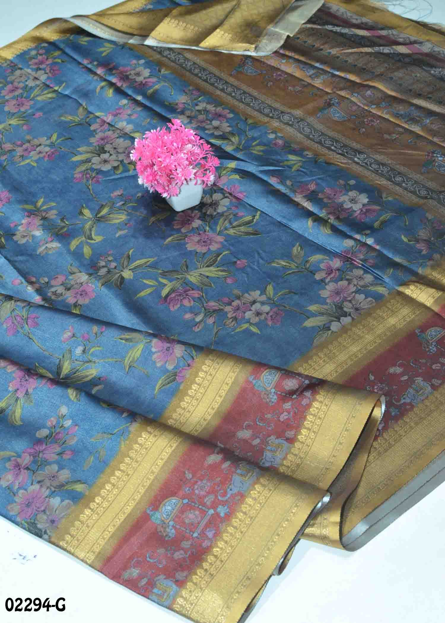 Cadbury – 02294-G Blue Color Excellent Dola Silk Saree CM1357831 (RR7E)