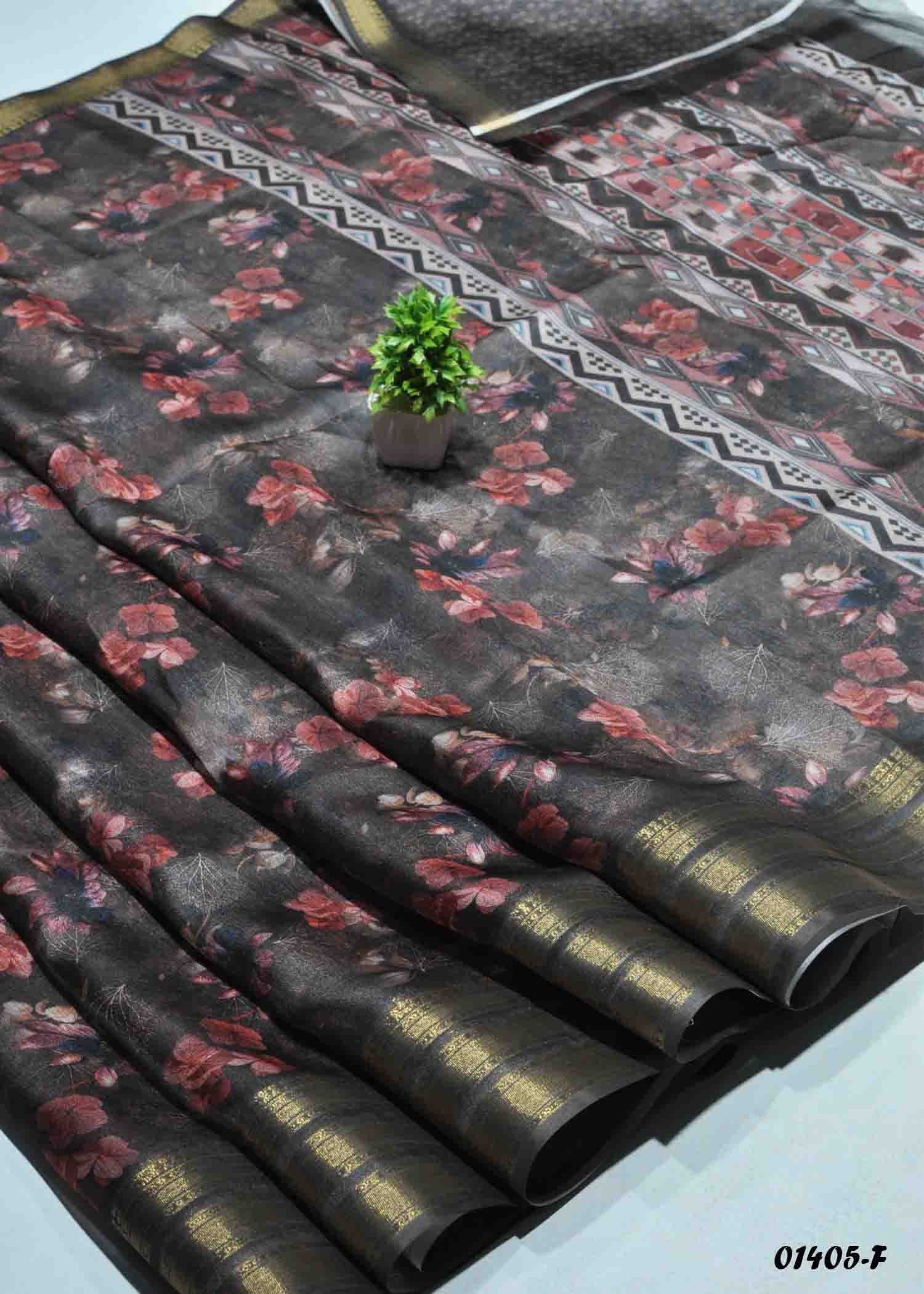 Crystal – 01405-F Brown Color Digital Print Dola Silk Saree CM1340940 (RR5C)