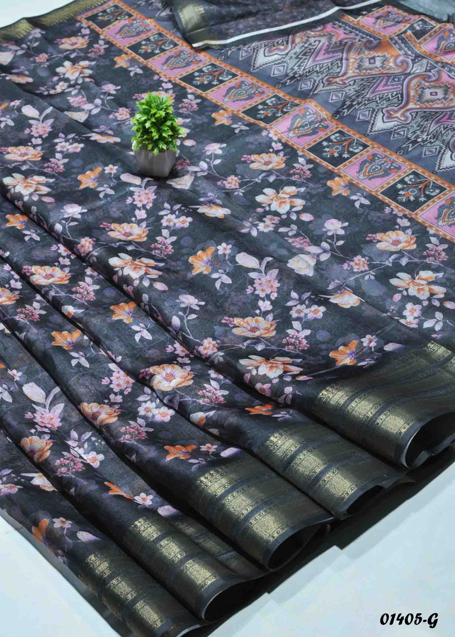 Crystal – 01405-G Black Color Digital Print Dola Silk Saree CM1340940 (RR5C)