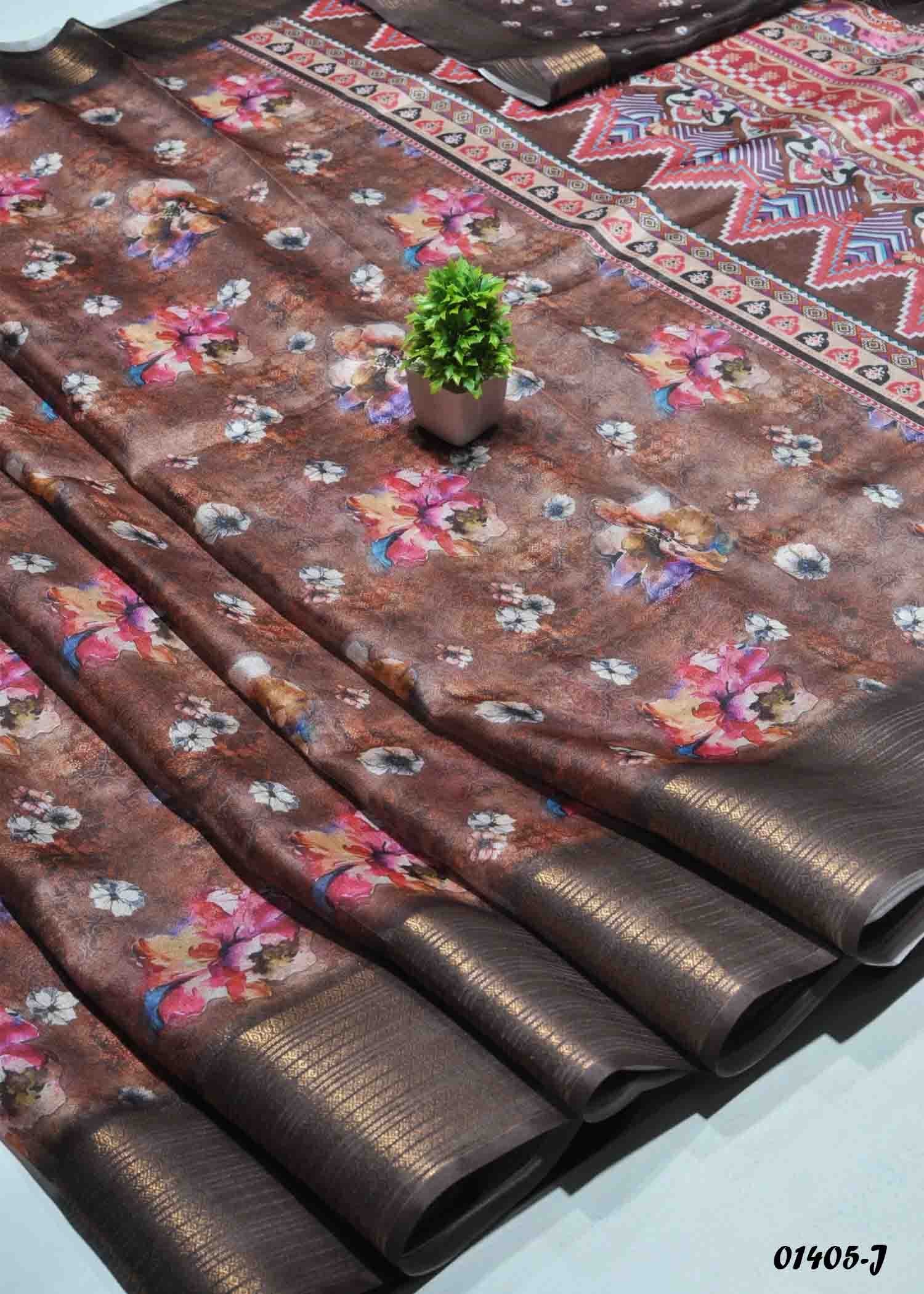 Crystal – 01405-J Brown Color Digital Print Dola Silk Saree CM1340940 (RR5C)