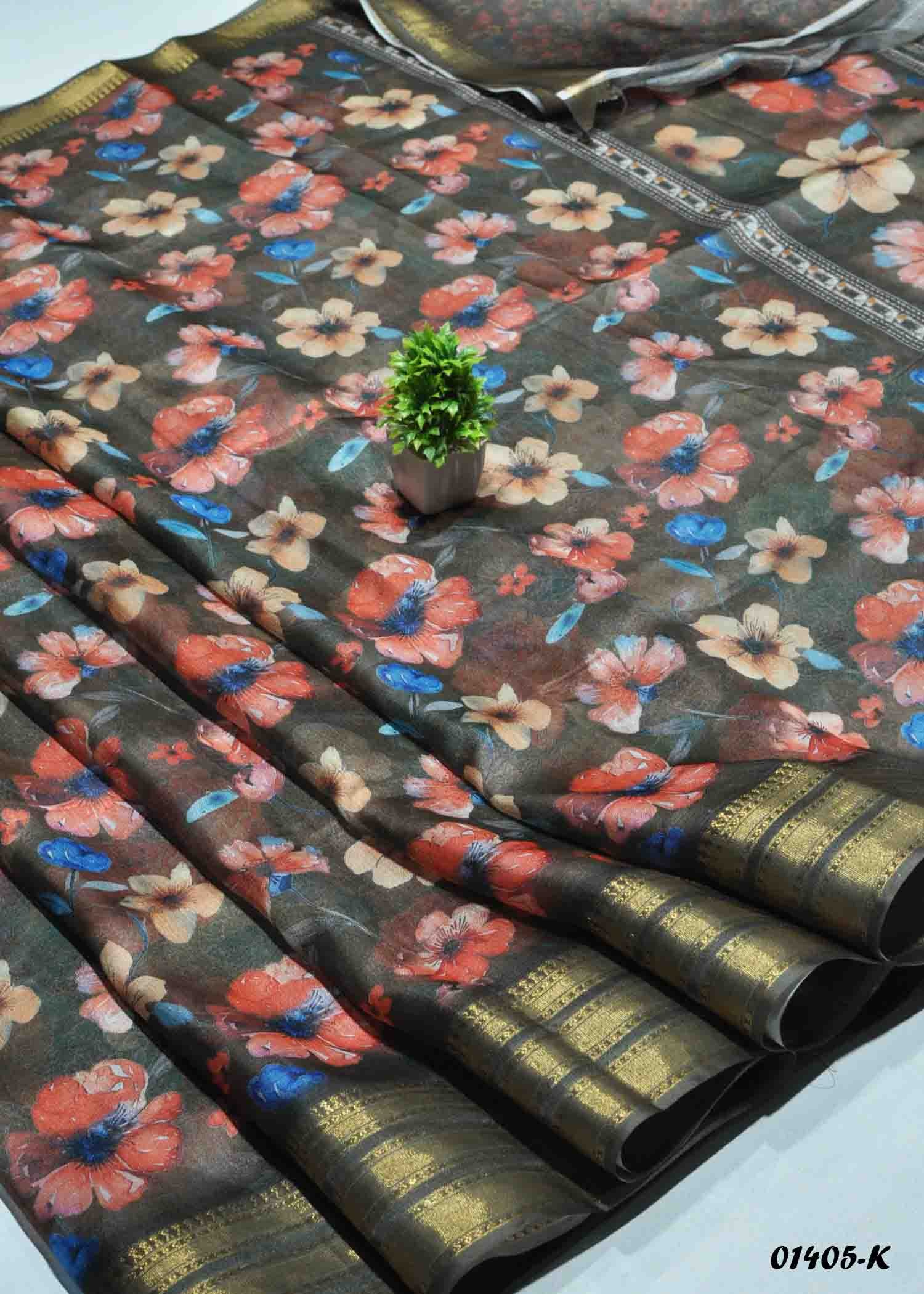 Crystal – 01405-K Grey Color Digital Print Dola Silk Saree CM1340940 (RR5C)