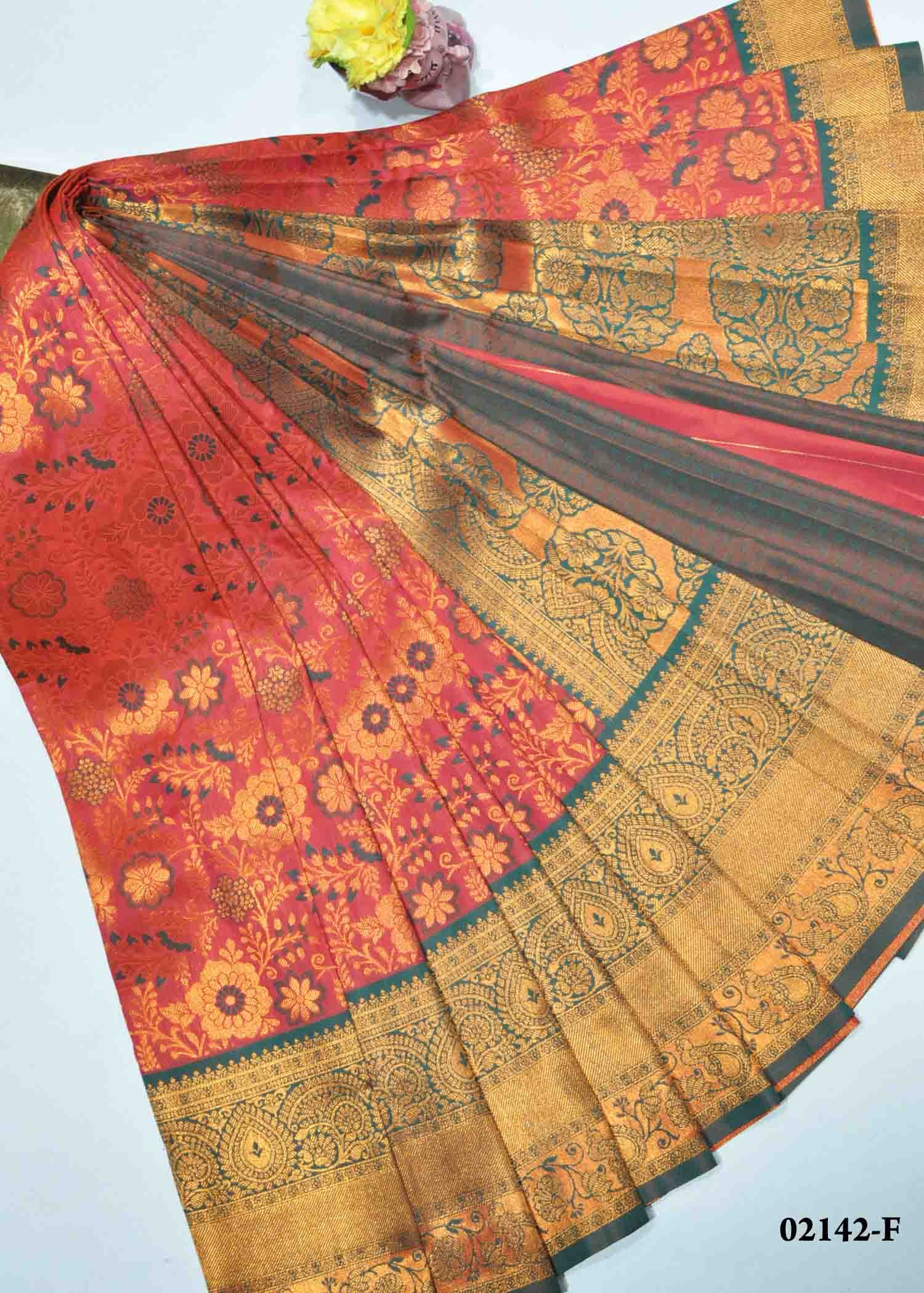Dakshaja – 02142-F Red Color Traditional Look Semi-Pattu Saree CM1365299 (LR1D)