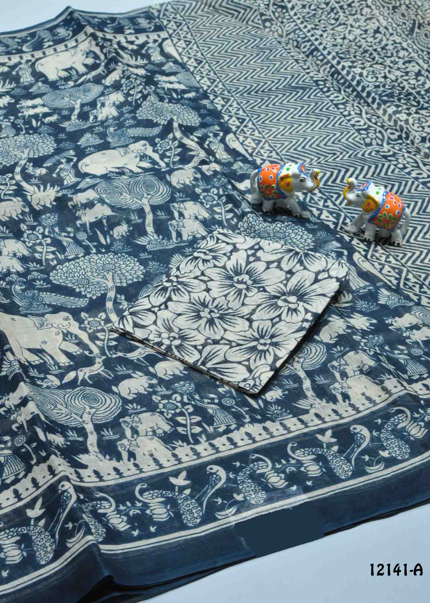 Dakshaja – 12141-A PeacockBlue Soft Pure Cotton Saree CM1327230 (LR4C)
