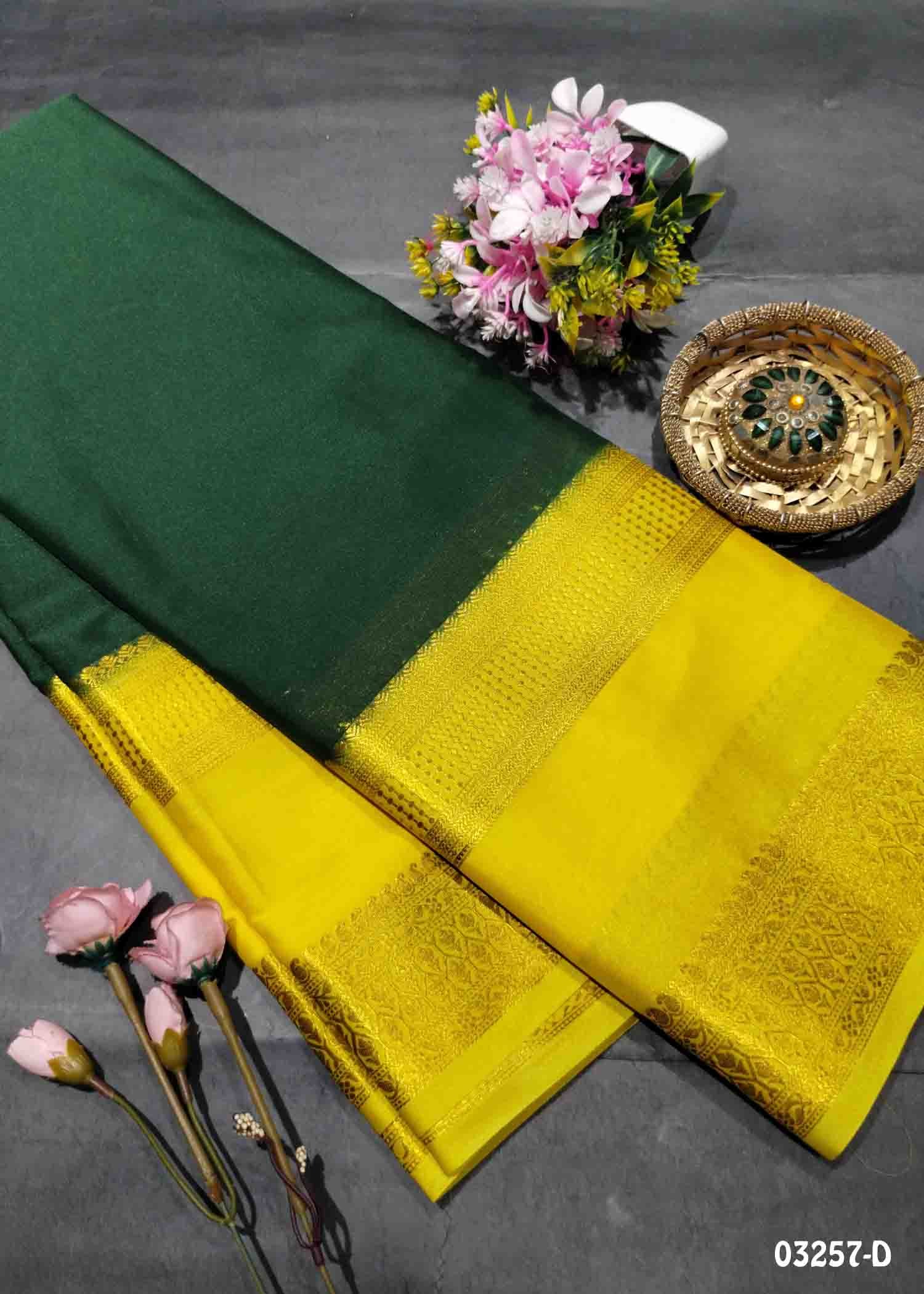 DamaDamayanthy -03257-D DarkGreen Color Traditional Mysore Crepe Silk Sarees CM1377912 (RR3E)