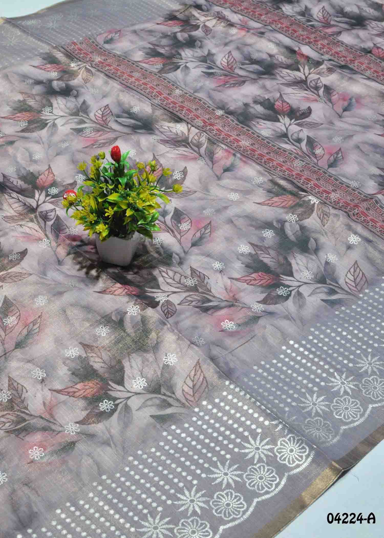 Danvanthika – 04224-A LightGrey Color Cotton Tissue Saree CM1381015