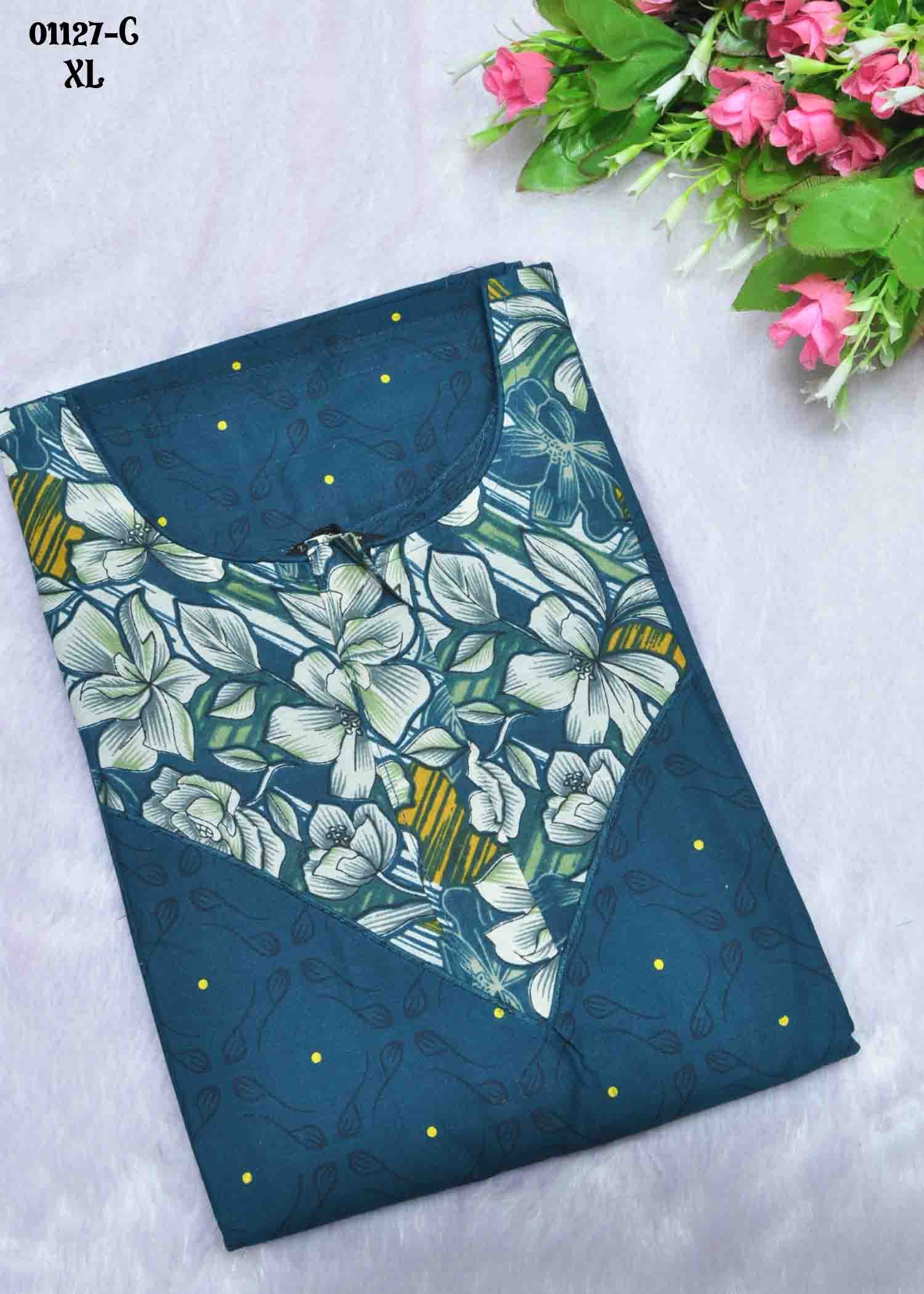 Darsha -01127-C [XL] PeacockBlue Color (Pranjul Brand) Cotton Readymade Pocket Nighty CM1337460 (LR1C)