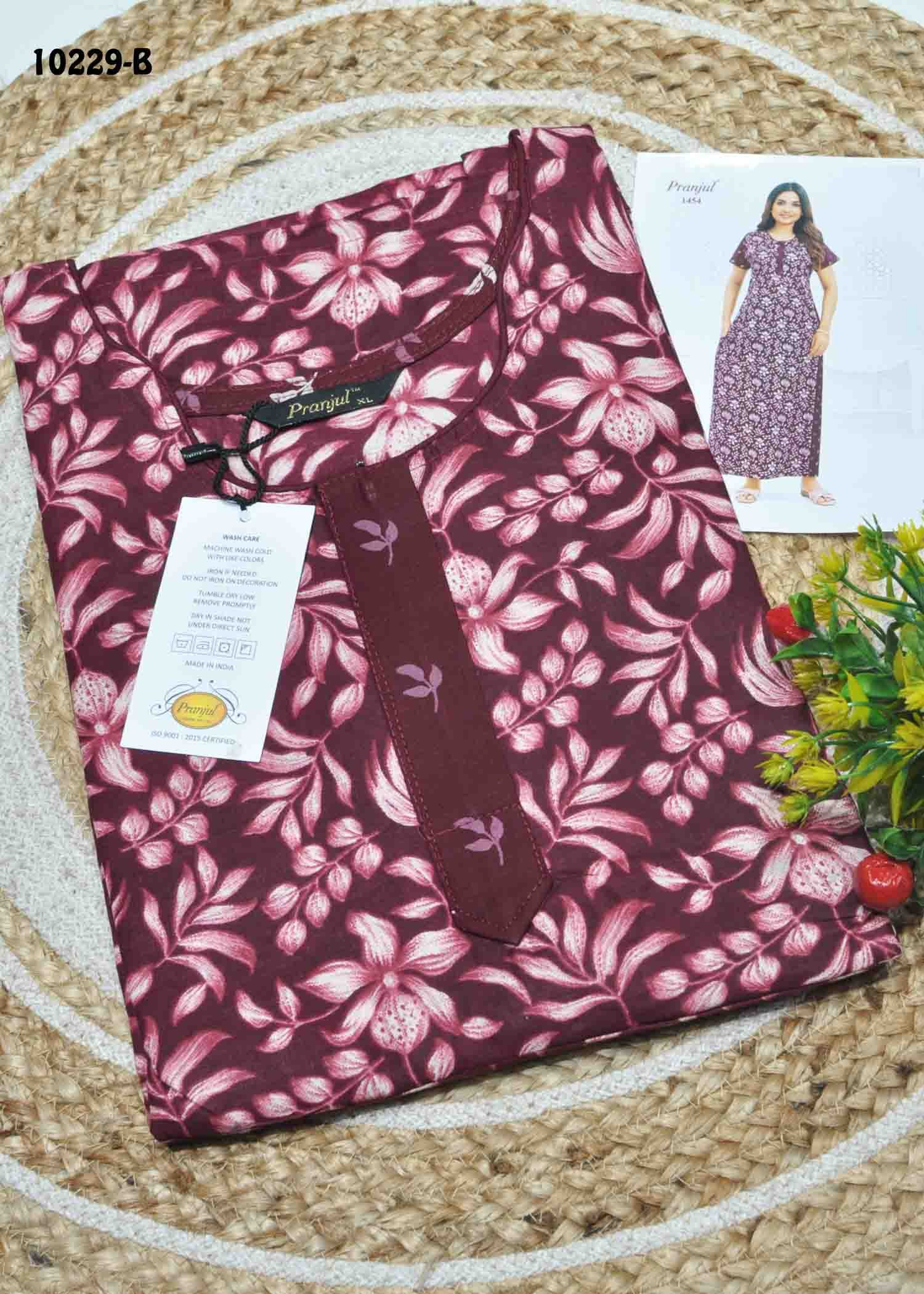 Darsha -10229-B [XL] Maroon Color (Pranjul Brand) Cotton Readymade Pocket Nighty CM1306129 (LR1B)