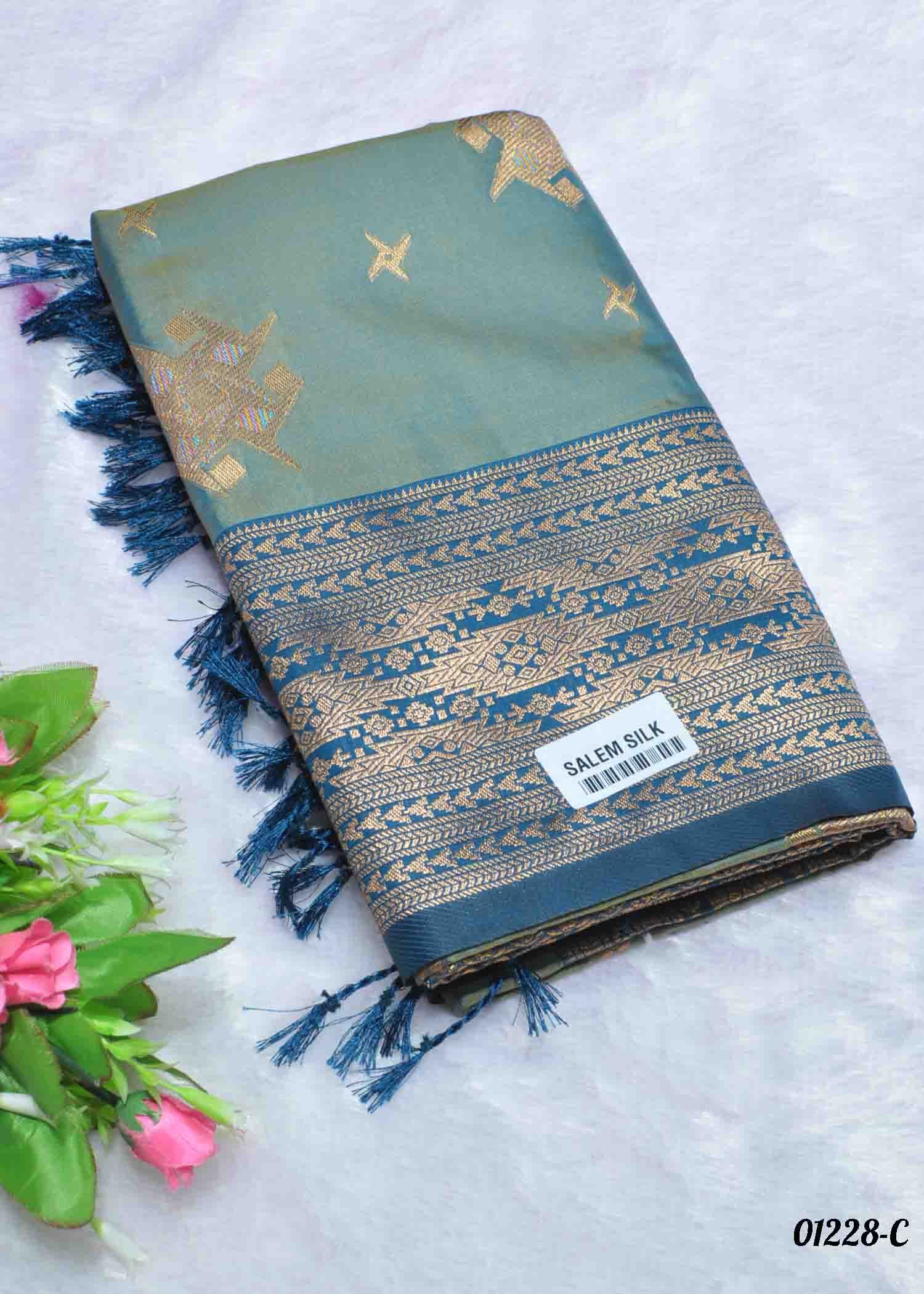Fabric : Semi-Soft Silk Color : TealGreen |