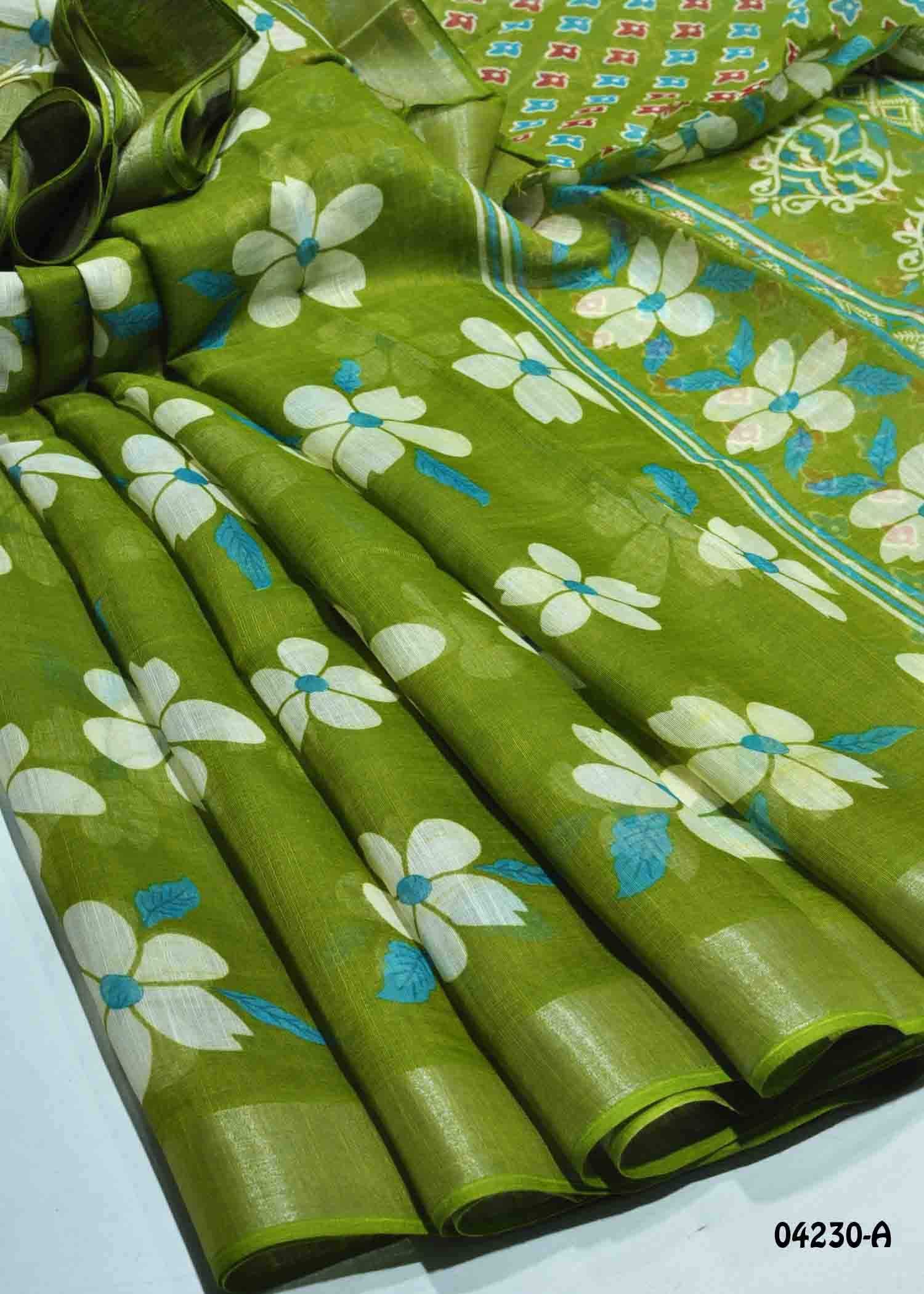 Dharsana – 04230-A OliveGreen Color Trendy Linen Cotton Saree CM1387259