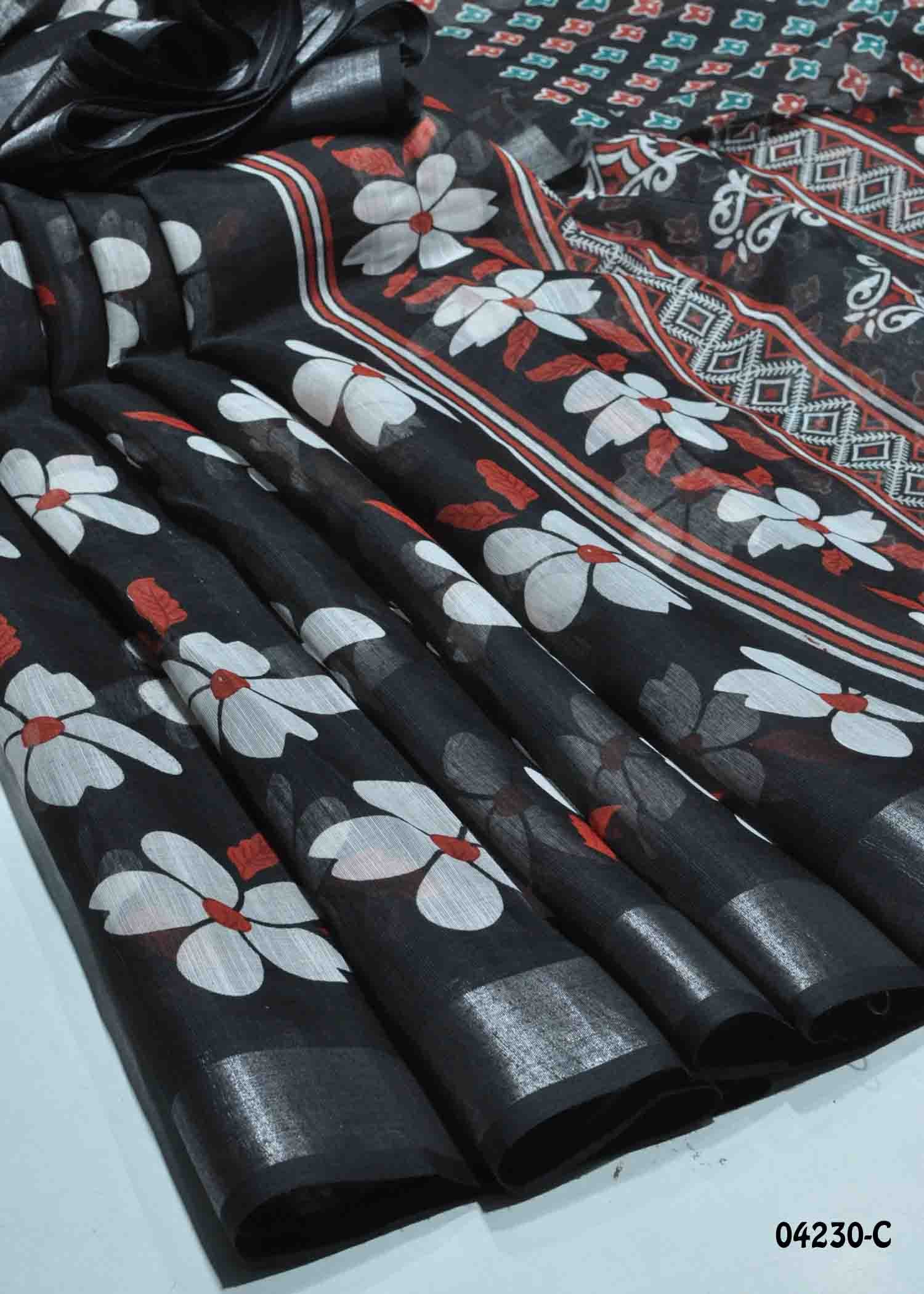 Dharsana – 04230-C Black Color Trendy Linen Cotton Saree CM1387259