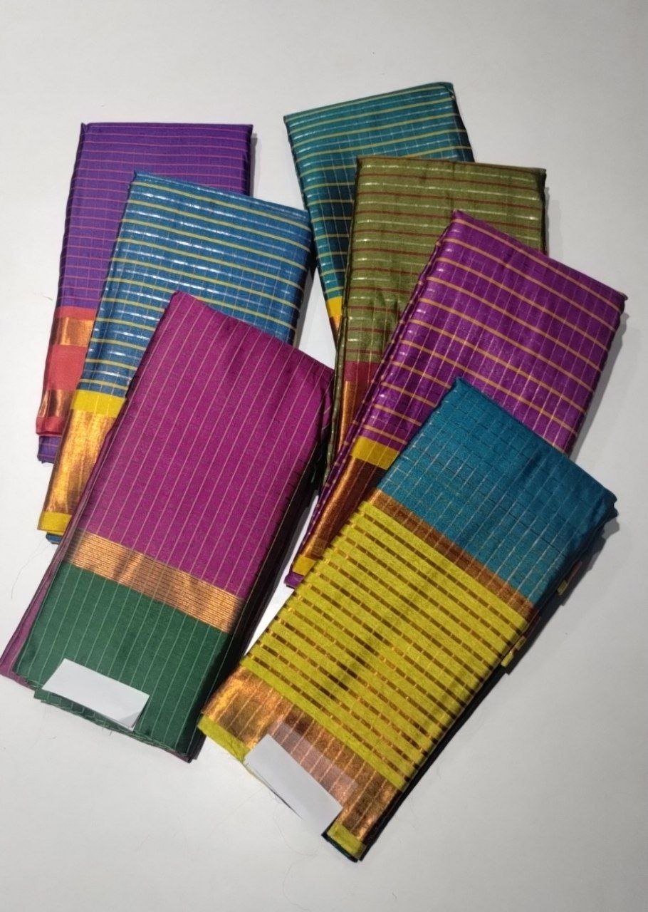 Golden checks 10210-F Multi color cotton sarees CM1294585*5,Cm1294582*2