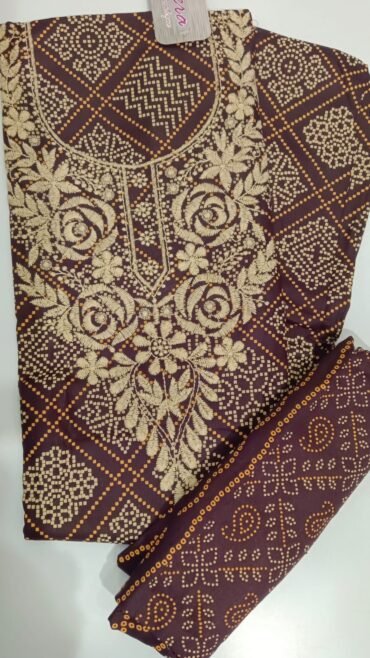 | Occasion : Festival Top : PansyPurple Color Kutchi embroidery and mirror work (2.20 METER) Bottom with Inner : PansyPurple Color Santoon Material (3.80 METER) Shawl : Multi Color Geometric pattern dupatta (2.20 METER) Weight : 880 Grams Work : Geometric pattern& Mirror work Wash : Hand Wash |