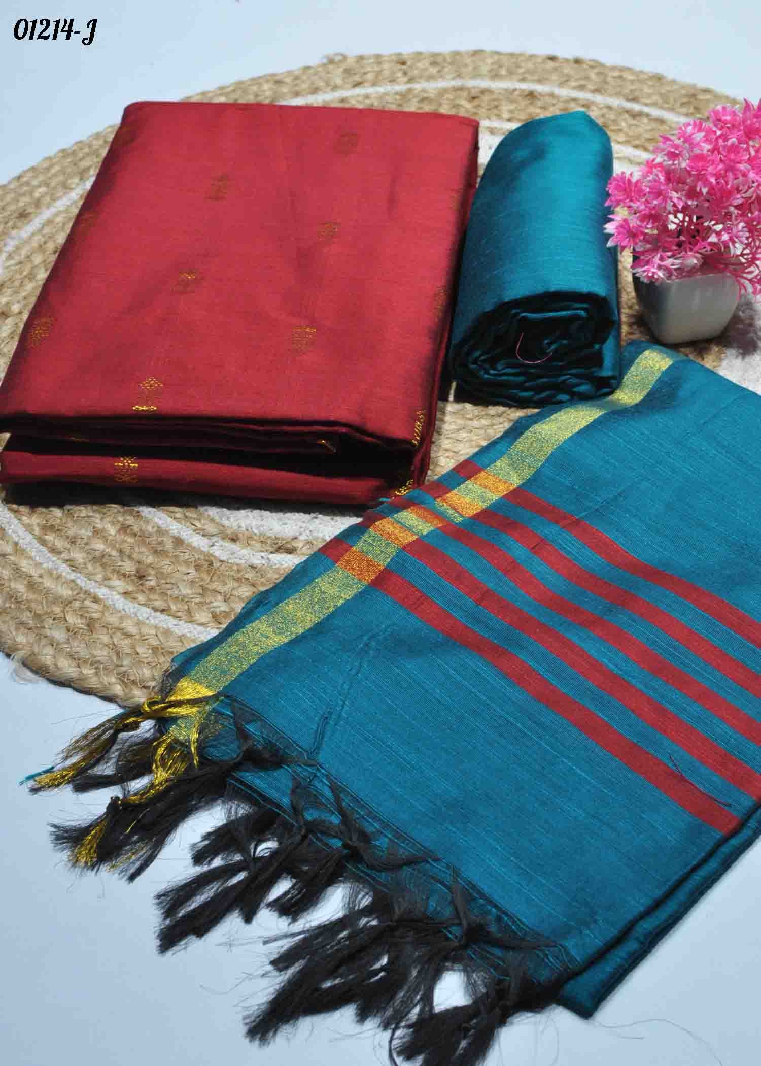 Haashitha – 01214-J Red Color Traditional Look Dupion Silk Salwar Material CM1343921 (RR3B)