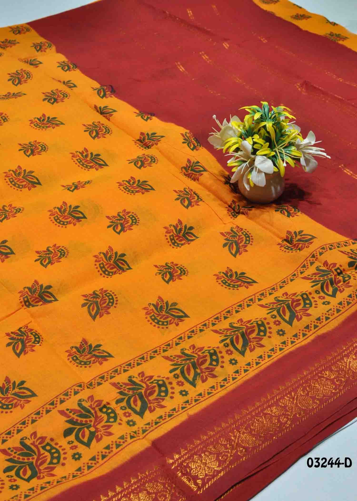 Harshitha -03244-D DarkYellow Color Traditional Madurai Chungudi Cotton Sarees CM1371153 (RR2C)