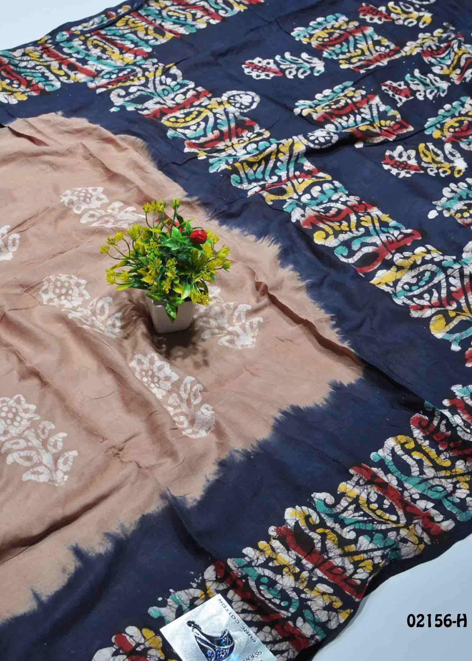 Ilanila -02156-H Tan Color Summer Special Battik Cotton Saree CM1365919 [LR4D]