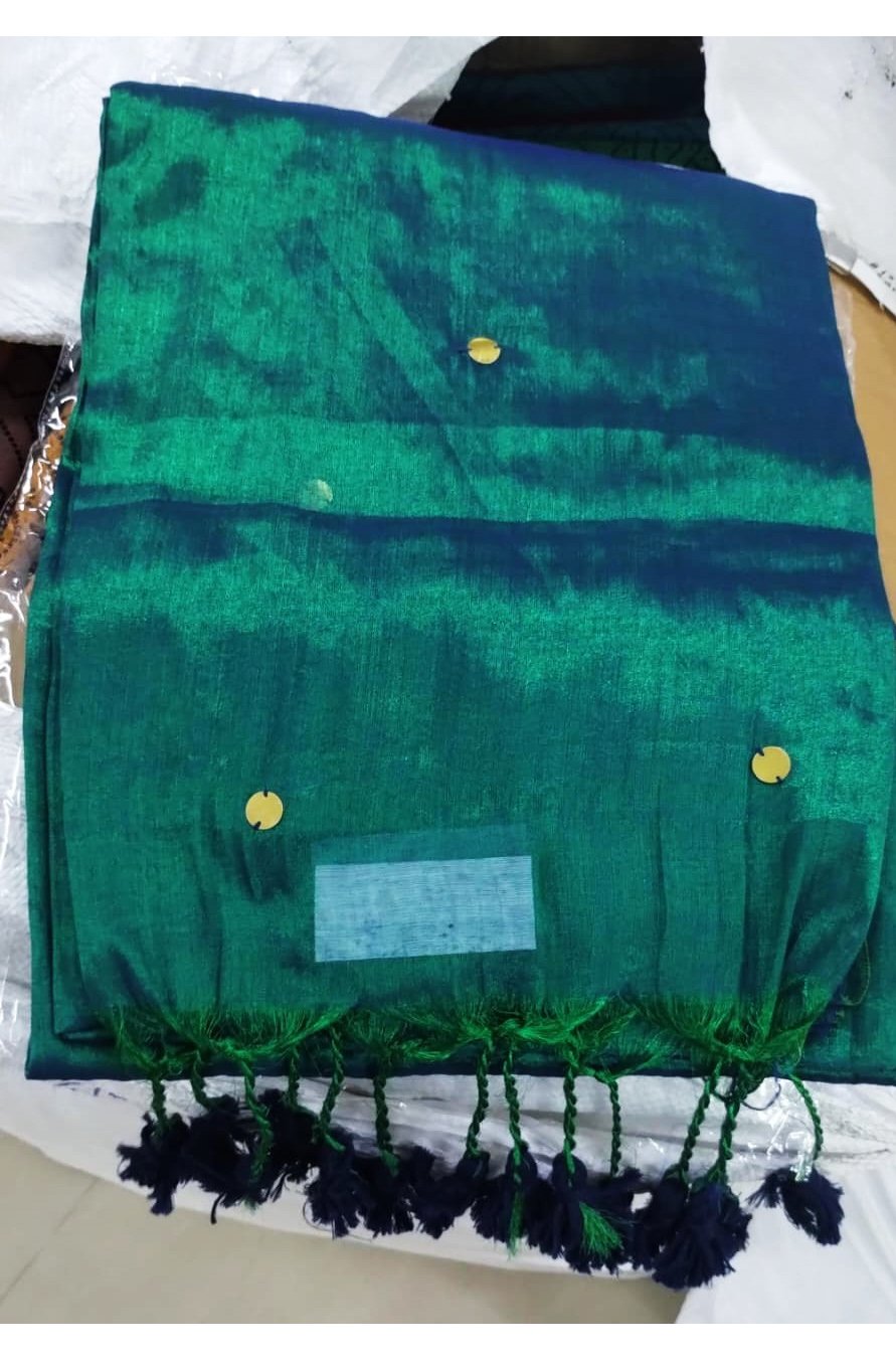 Inba 04660-A peacock green colour tissue cotton saree CM1393740
