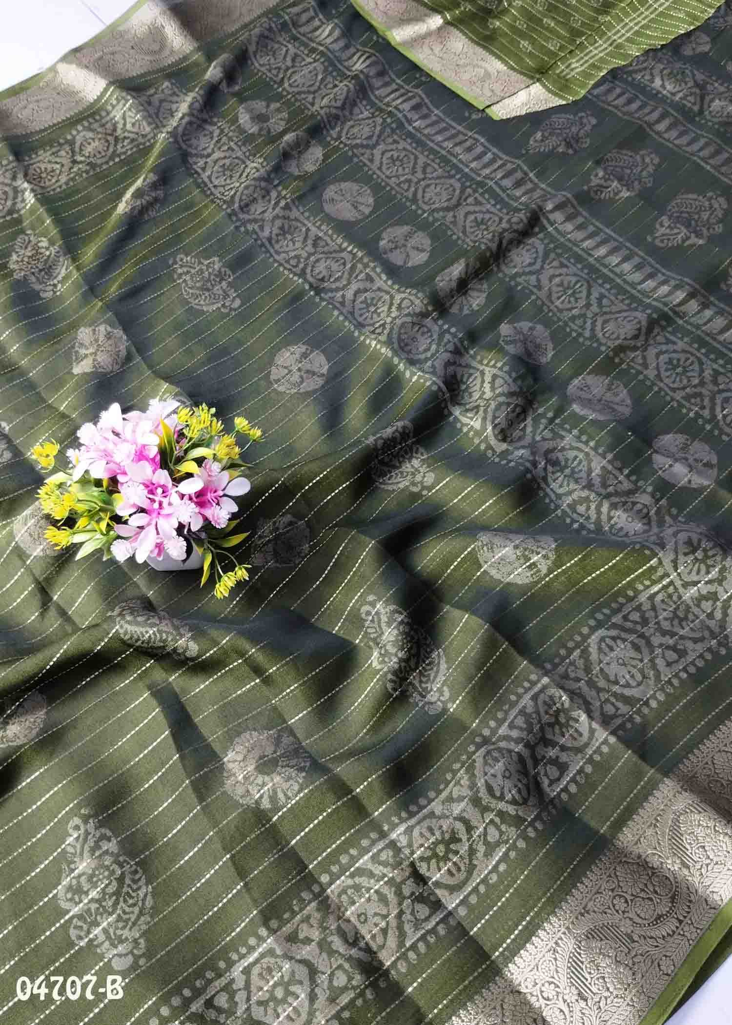 Iswarya -04706-B OliveGreen Color Trendy Moss Chiffon Saree CM1393303