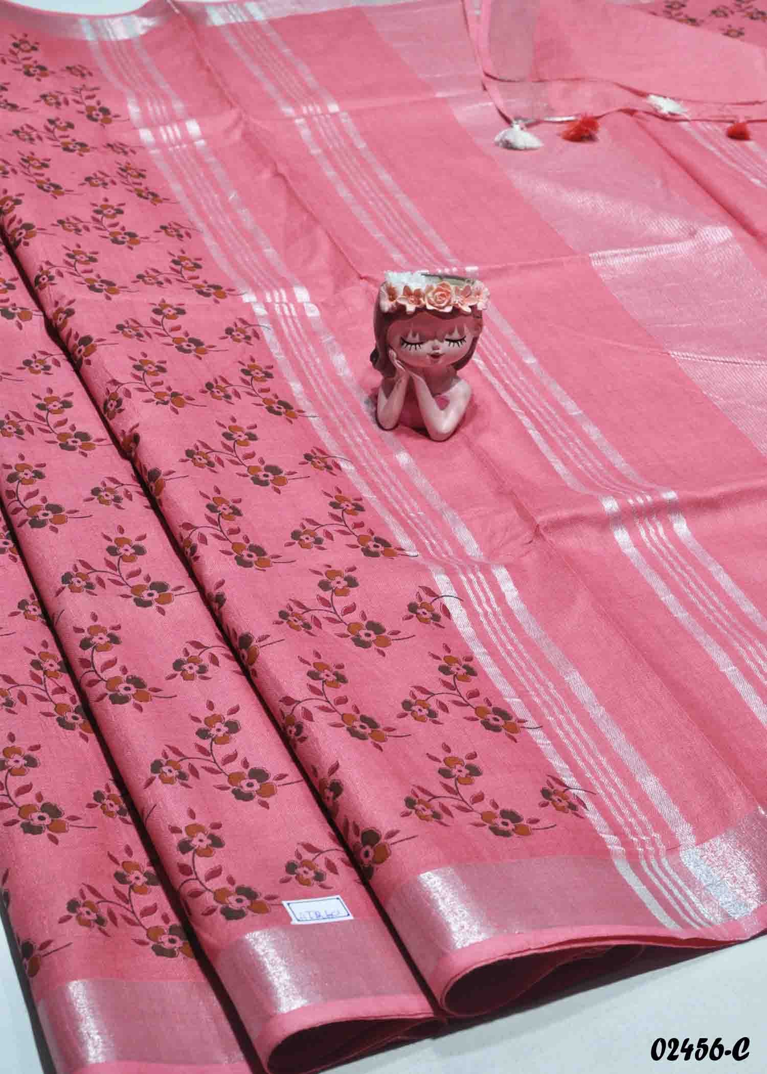 Janani – 02456-C CoralPink Color Floral Butta Prints Handloom Cotton Saree CM1358700 (RR4D)