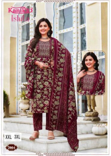 | Occasion : Perfect Look for Everyday Wear Fabric : Mix quality cotton feel Top ( with lining )bottom dupatta with superhit designs in vibrant colors Top : Straight kurti ( with lining )with Embroidery on Neck with height 42 Bottom: Premium quality stitched pant Dupatta : Printed cotton feel dupatta ( full cut 2.15) Size available : XXL 3XL Weight : 470 Grams Wash : Normal Wash |