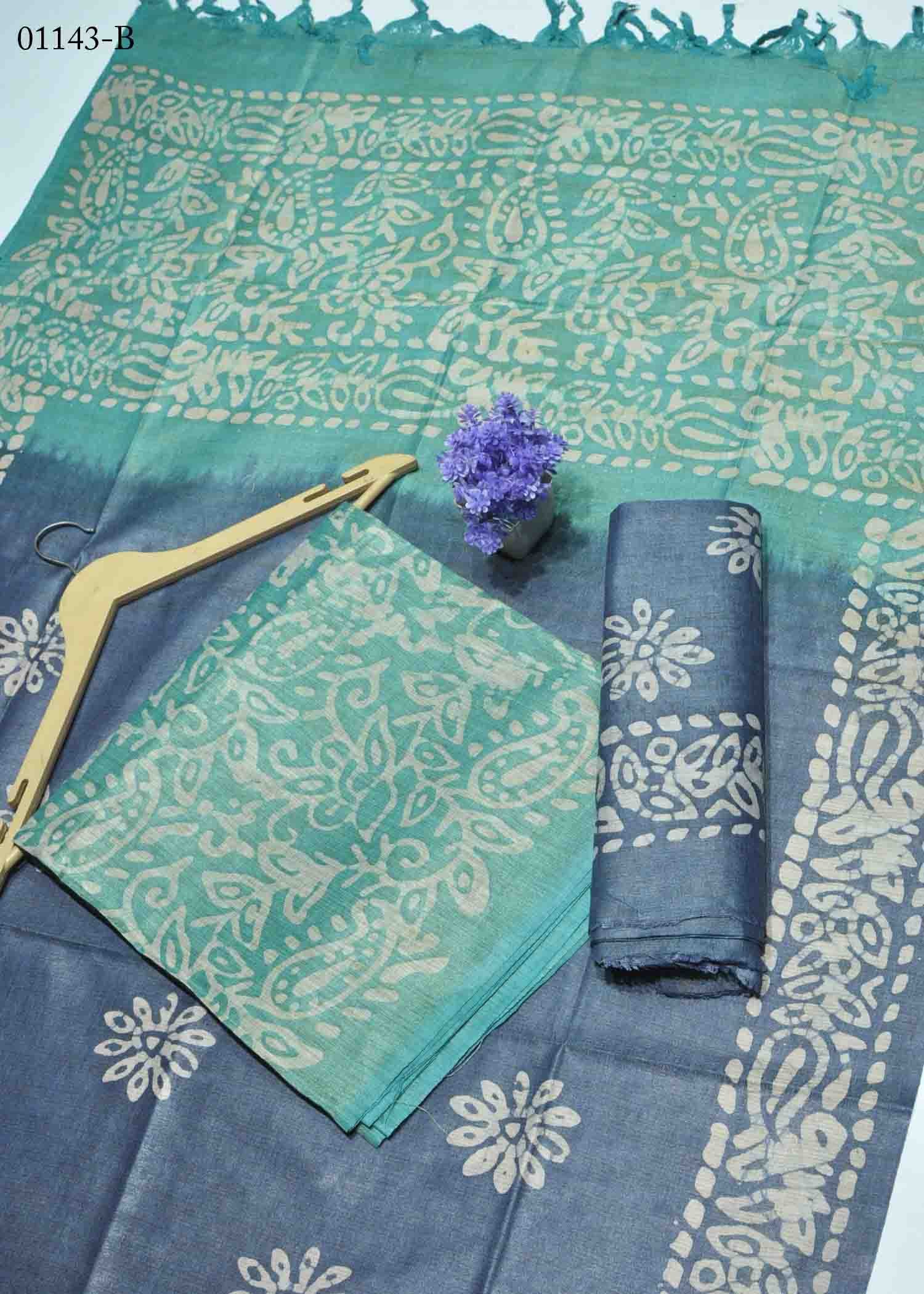| Occasion : Festival Top : Green Color Batik Cotton Salwar Material (2.20 METER) Bottom : Grey Color Batik Material (2.20 METER) Shawl : Grey With Green Color Batik Cotton Shawl (2.30 METER) Weight : 590 Grams Work : Batik Printed & Tassels Wash : Normal Wash |