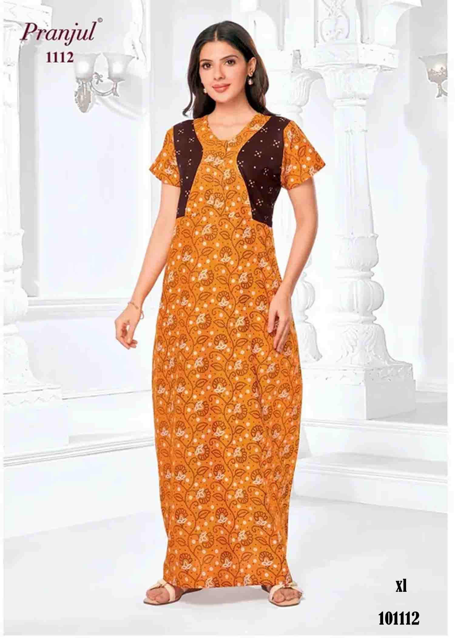 Karunya -101112 [XL] Yellow Color (Pranjul Brand) Cotton Readymade Pocket Nighty CM1300265 (LR2B)
