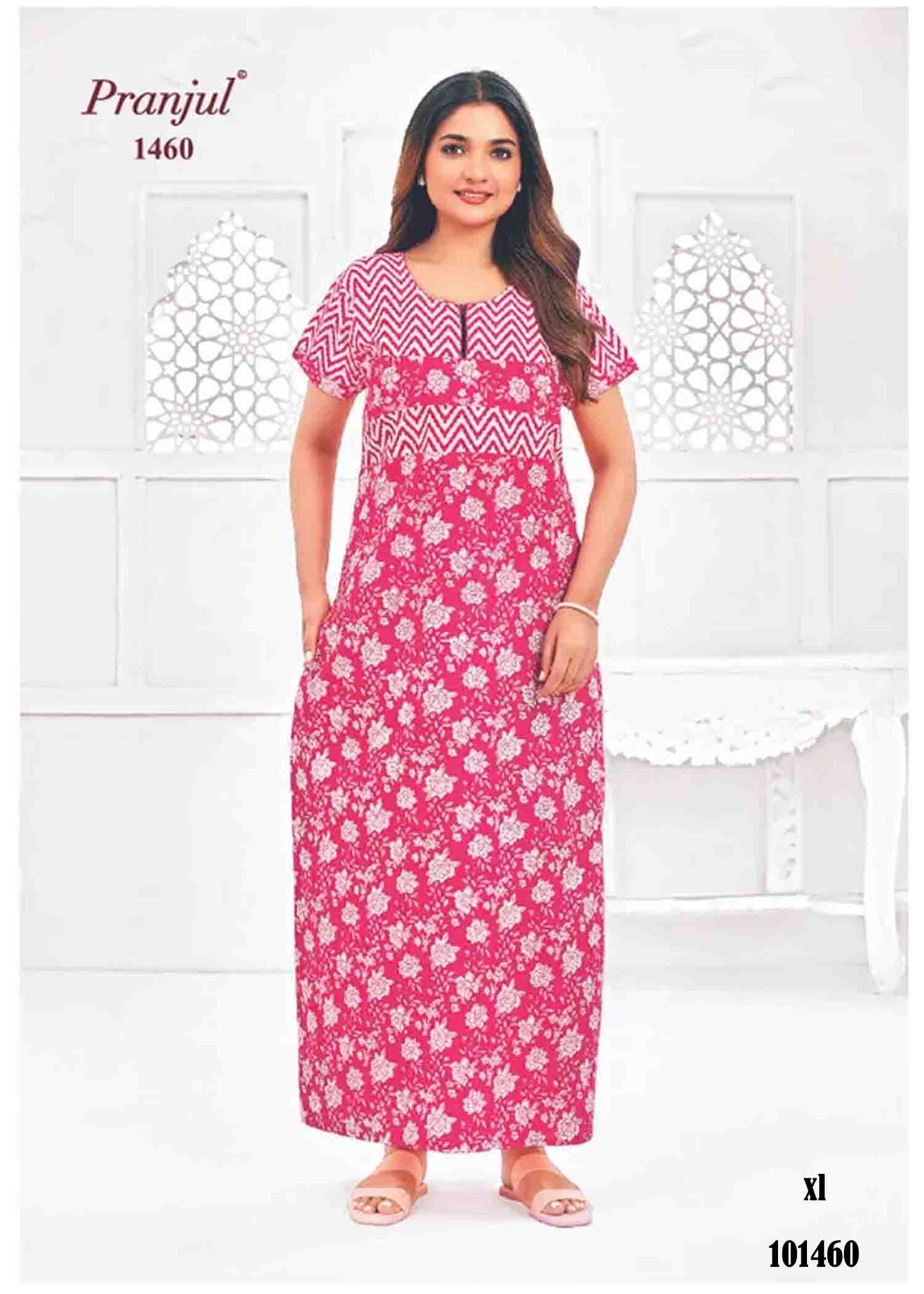 Karunya -101460 [XL] Pink Color (Pranjul Brand) Cotton Readymade Pocket Nighty CM1300265 (LR2B)