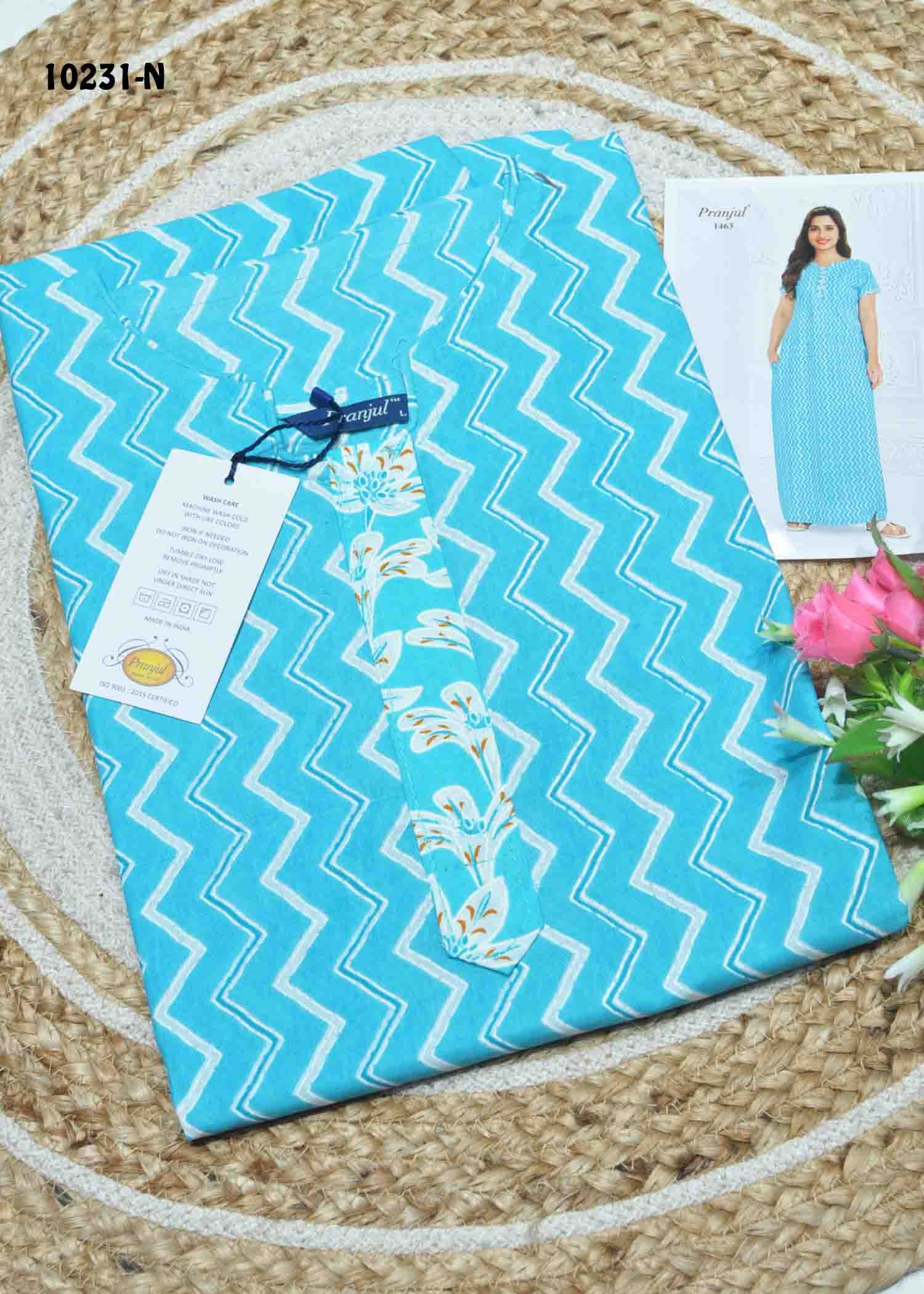 Kayal -10231-N [L] SkyBlue Color (Pranjul Brand) Cotton Readymade Pocket Nighty CM1306129 (LR1B)