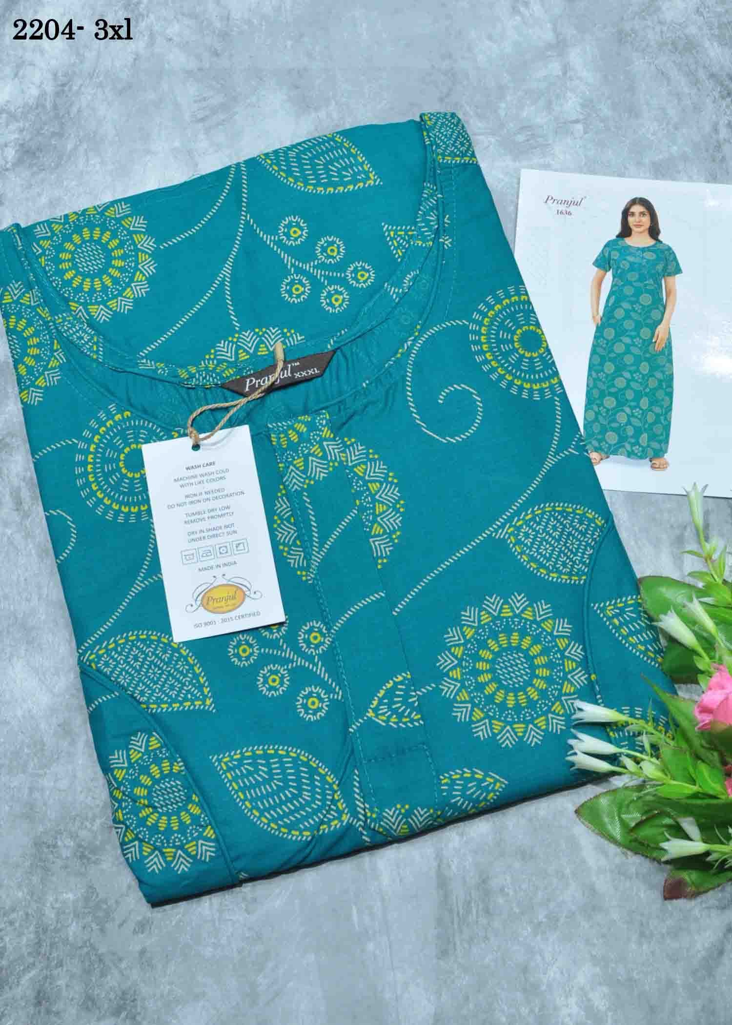 Lakshitha -2204 [3XL] PineGreen Color (Pranjul Brand) Cotton Readymade Pocket Nighty CM1347939 (LR1D)
