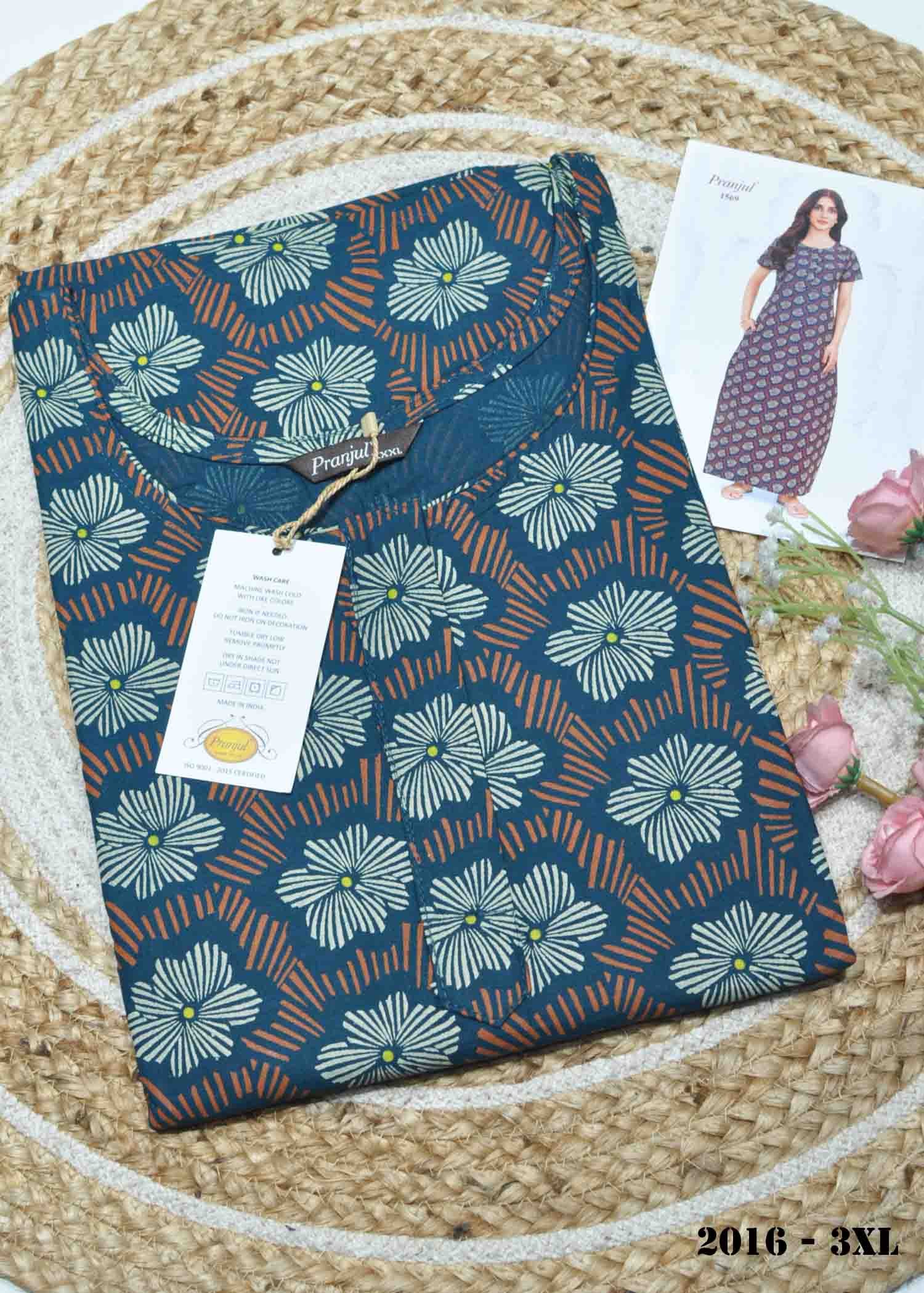 Lathiksha -2016 [3XL] PeacockBlue Color (Pranjul Brand) Cotton Readymade Pocket Nighty CM1313899 (RR1B)