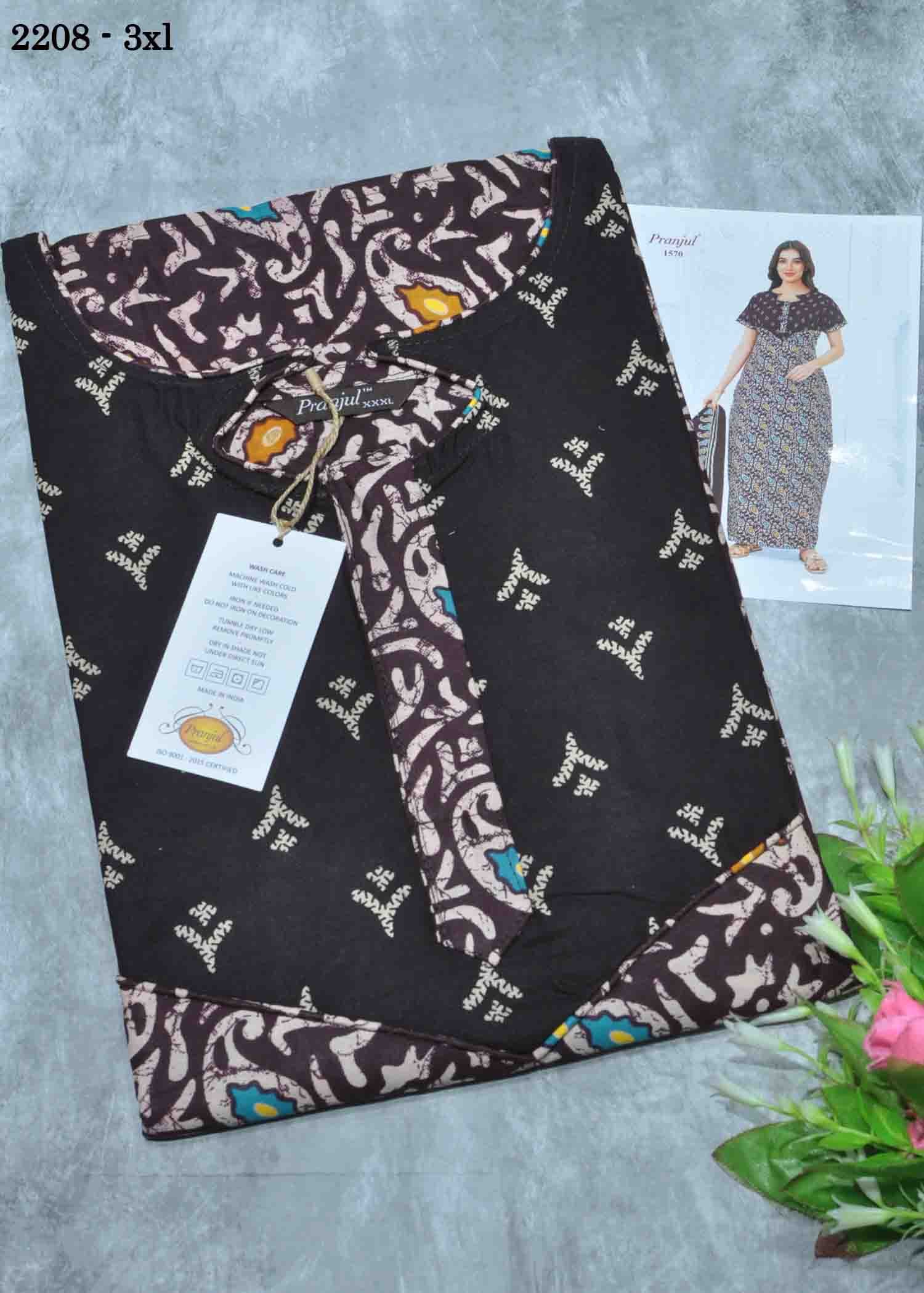 Lumini -2208 [3XL] DeepPurple Color (Pranjul Brand) Cotton Readymade Pocket Nighty CM1347939 (LR1D)